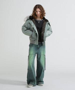 ・取り外し可能なファーやフードをジップで変形させ、自分好みの着こなしが楽しめます。