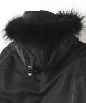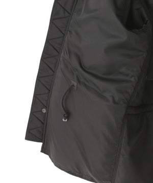 (表地)ナイロン 100%(裏地)ナイロン 100%(中わた)毛 60% ポリエステル 25% レーヨン 12% ナイロン 3%(リブ部分)毛 100%(ファー部分)チャイニーズラクーン(タヌキ)(皮革部分)牛革(フード裏)ポリエステル 100%
