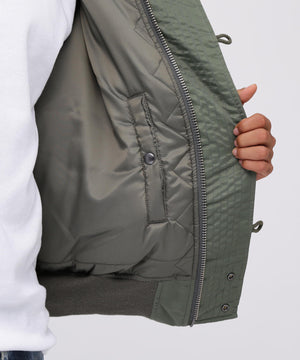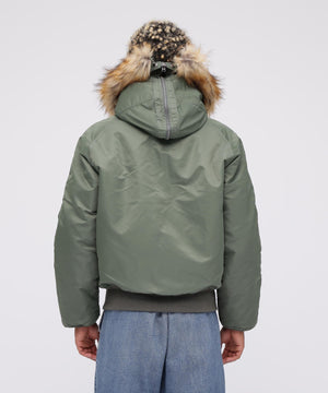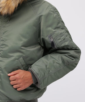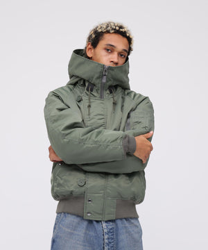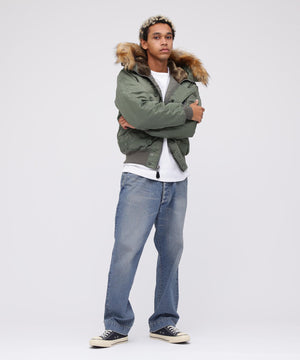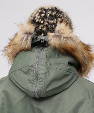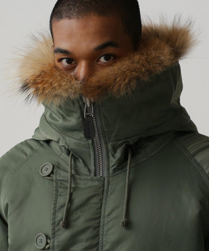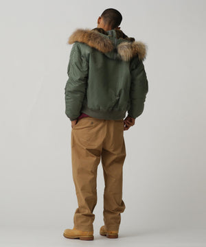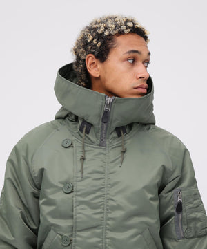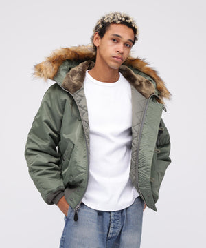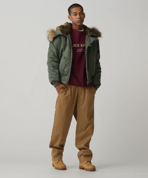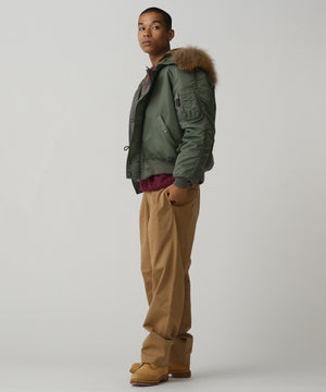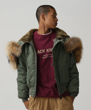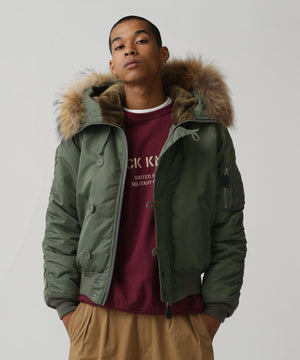 アメリカ空軍が1950年代に採用した寒冷地用フライトジャケット。N-2Aのエアーフォースブルー(アメリカ空軍飛行服指定色)が実戦では目立つことが問題になりすぐに対応され、1950年代後期には色をセージグリーンに変更したN-2Bが誕生した。N-2Aのデザインを踏襲しており、防寒性に優れているヘビーゾーン(-10℃~-30℃)用のフライトジャケットである。