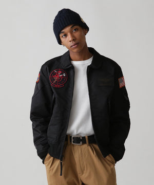 ・左胸には米海軍のウイングマークとAVIREXロゴのオリジナルパッチデザイン・ベーシックなサイズ感