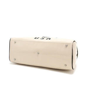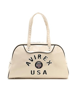 ・レザージャケットよりインスパイアされたバーシティーロゴが印象的なボストンバッグ