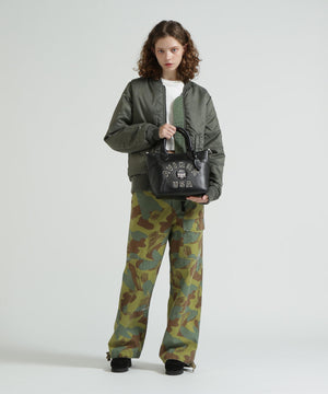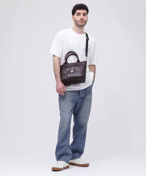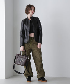 ・バーシティジャケットをモチーフにしたレザーミニトートバッグ