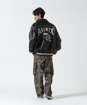 ・AVIREXのシグネチャーモデルのひとつである“VARSITYジャケット”にデザインを落とし込み、両ブランドのグラフィックが目を引く、特別仕様のモデル