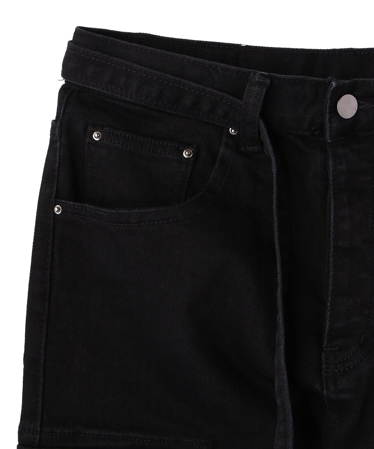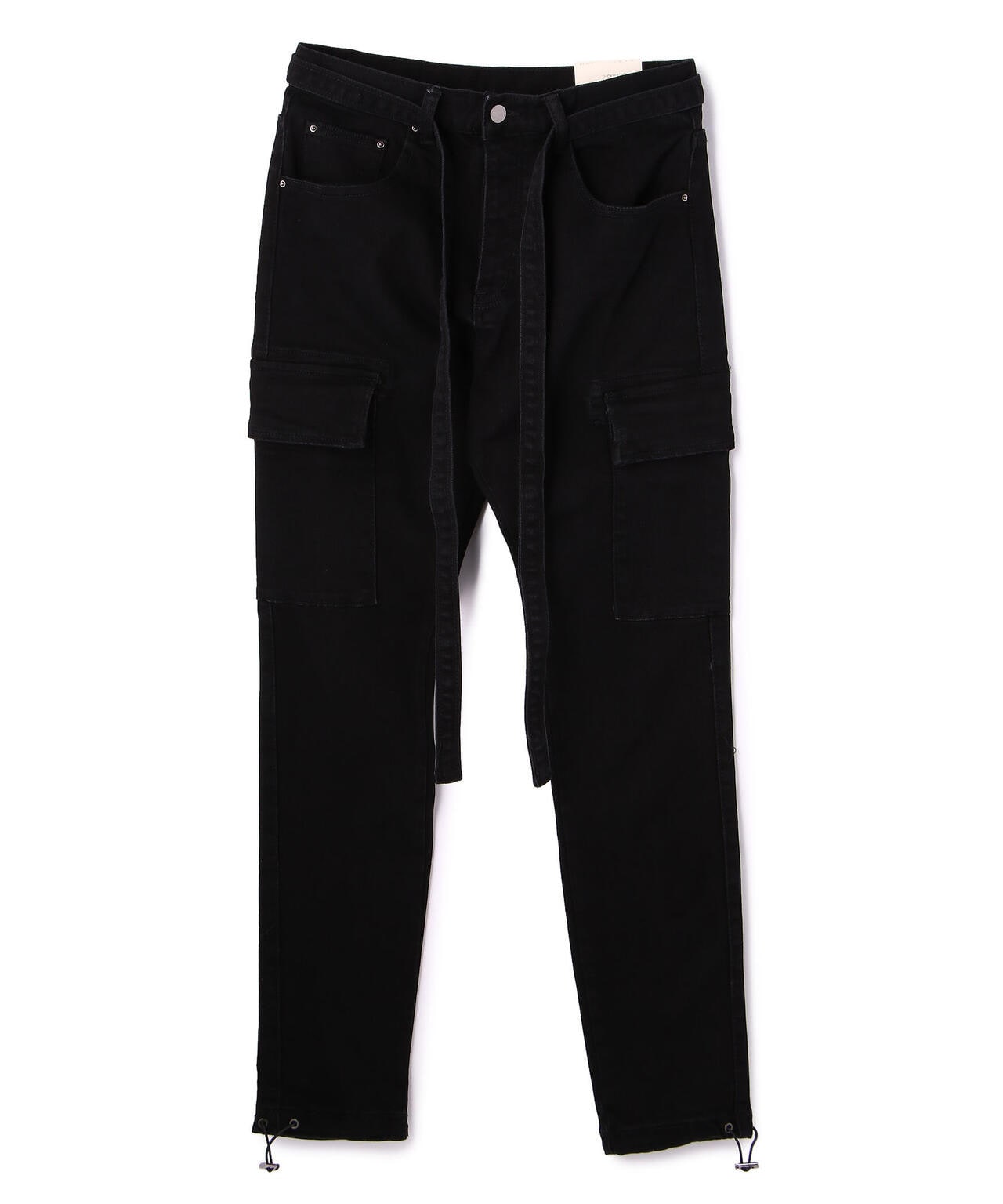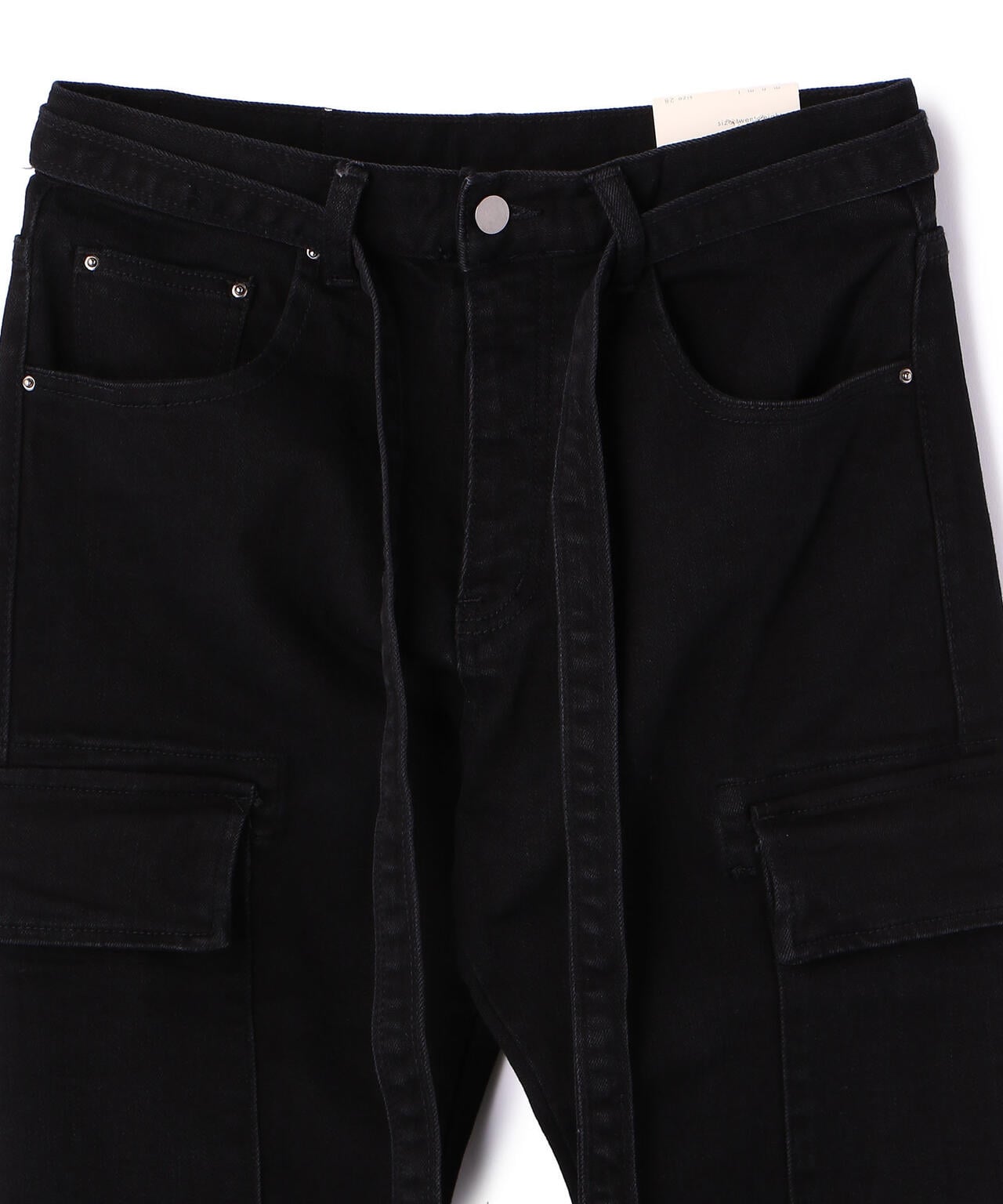 mnmlの人気アイテムの1つでもあるデニムカーゴパンツ。