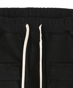 長めに設定されたウエストドローストリングスを垂らす事でスタイルにアクセントを加える事が可能。