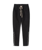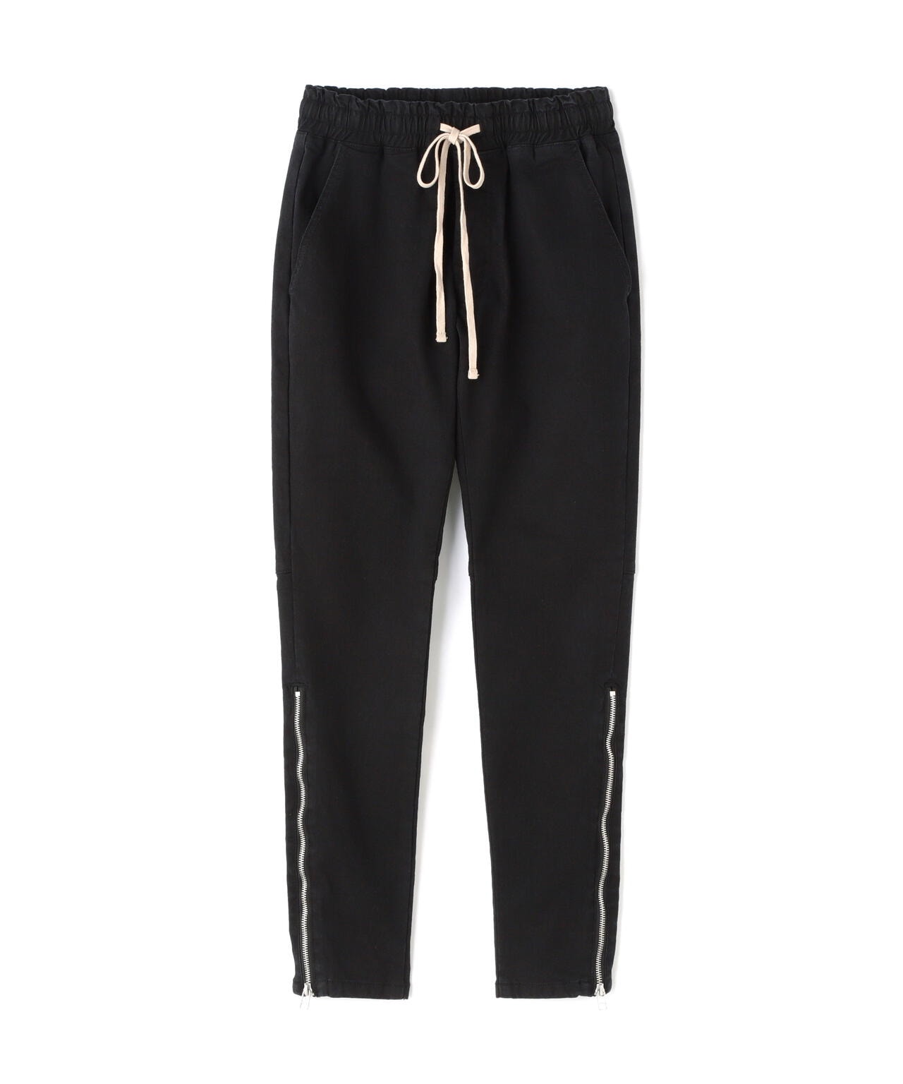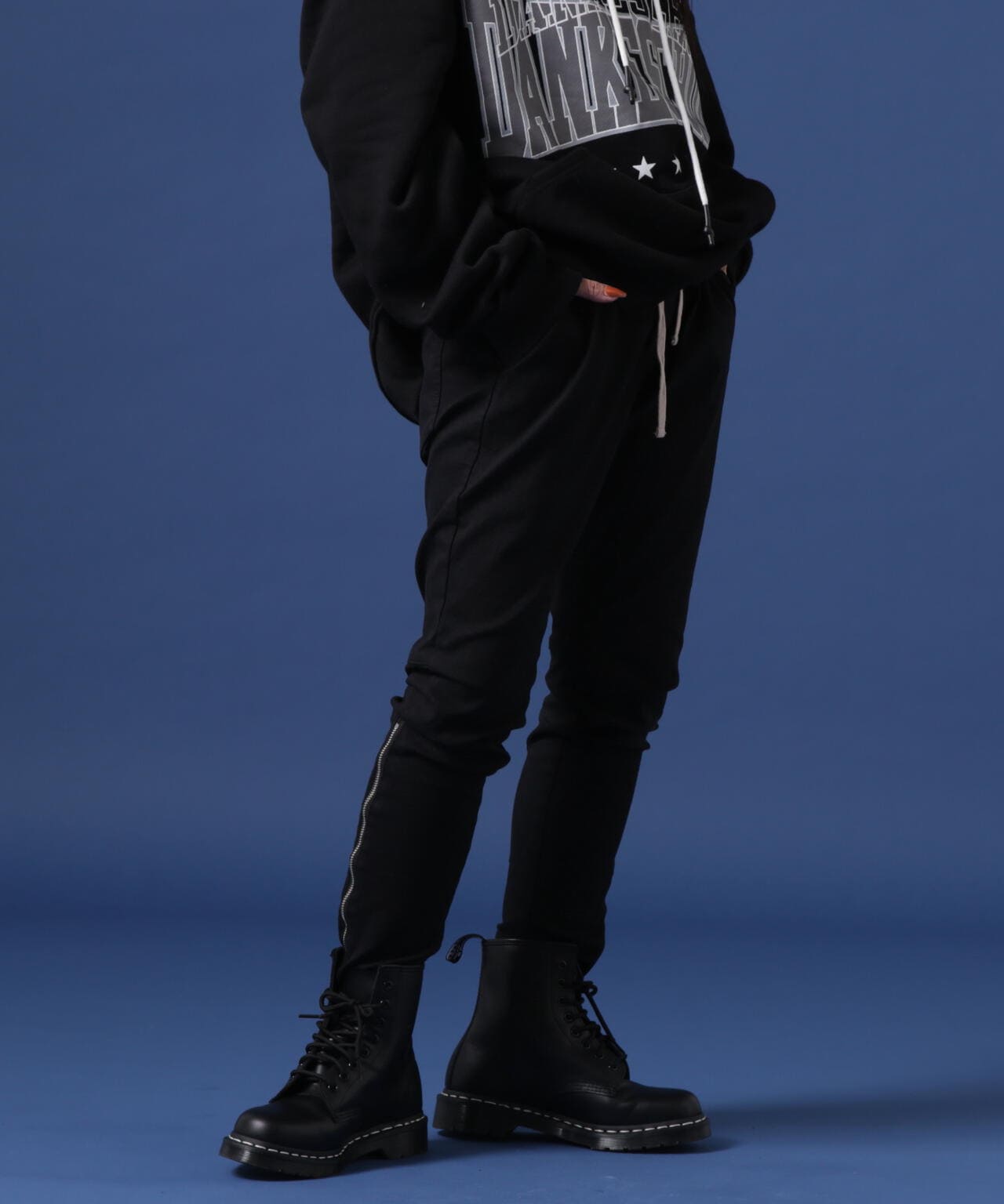 また、脹脛から裾口にかけて配したシルバートーンのジップは開閉が可能ですので、合わせるシューズやスタイリングによって変化をつけることも可能です。
