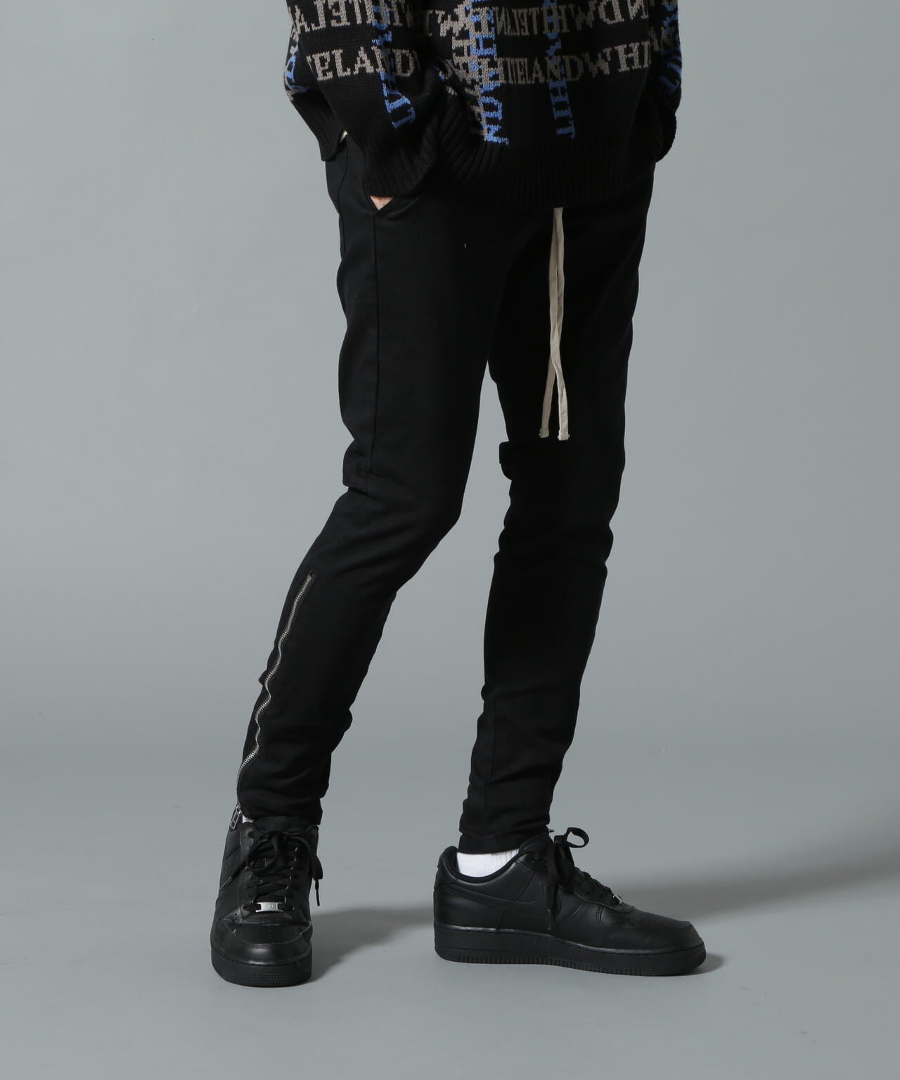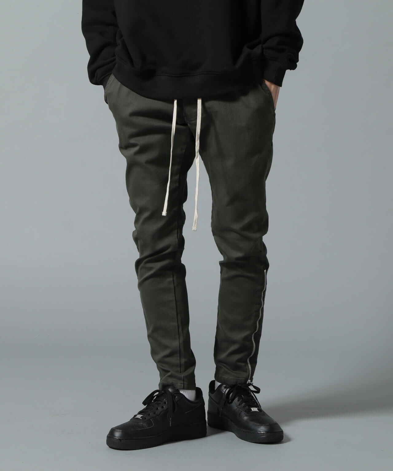 収縮性の強い素材を使用することで、身体へフィットするスリムシルエットながらもストレスフリーでクセになる履き心地の一本です。