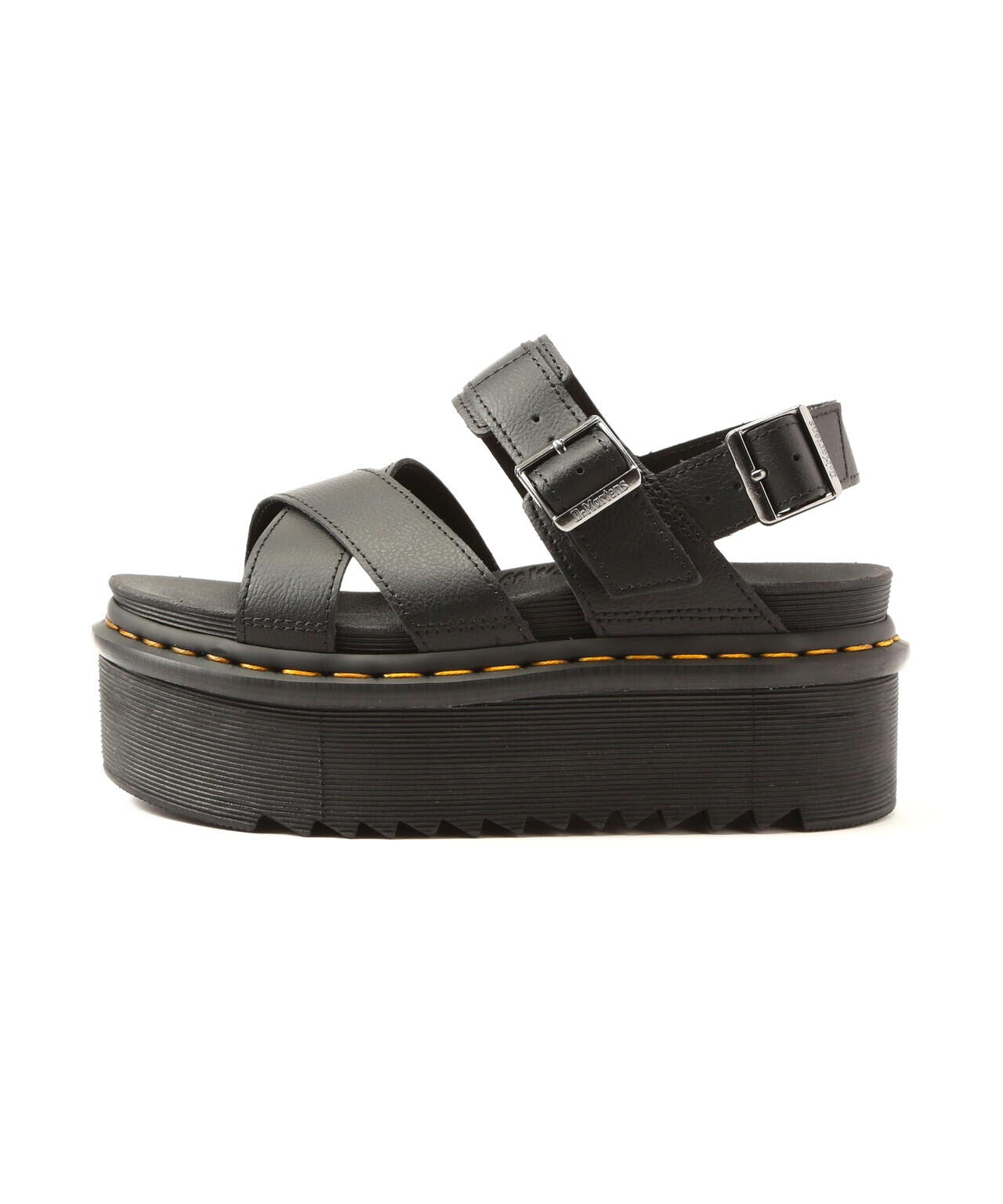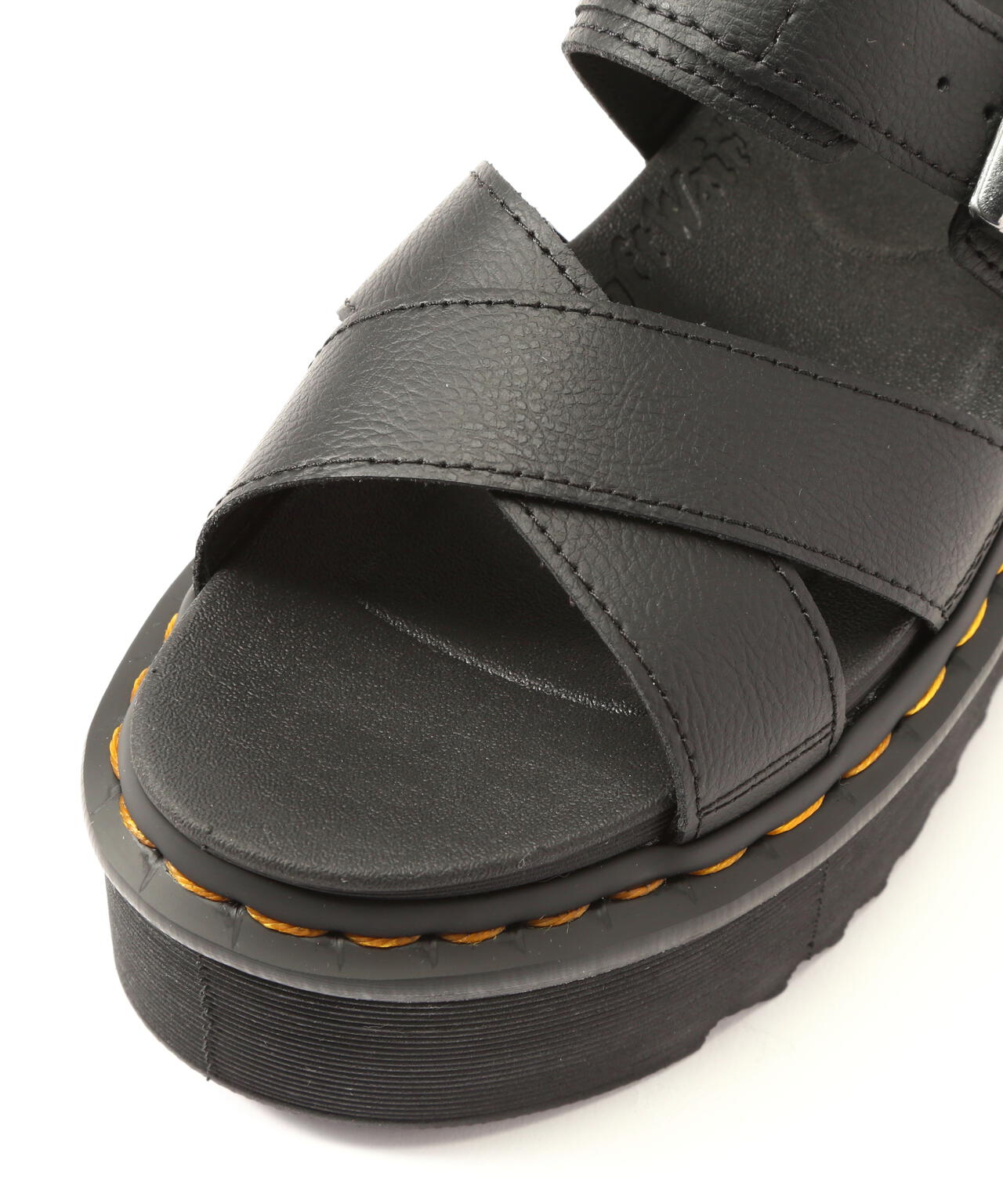 存在感のあるクロスストラップのプラットフォームサンダル。