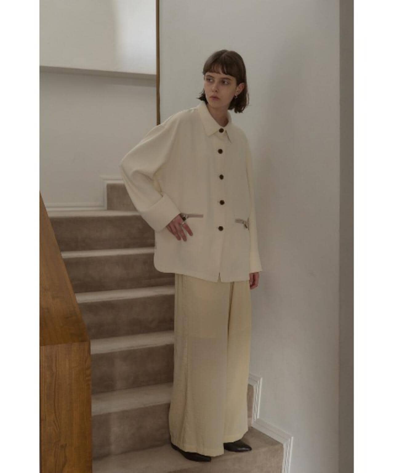ポケット口やサイドのスリット、袖口には配色のデザインを施し遊び心をプラスしています。ゆったりとしたシルエットでリラックス感もありつつ、さらっと落ち感のある素材感でモードな印象も兼ね備えたアイテムです。