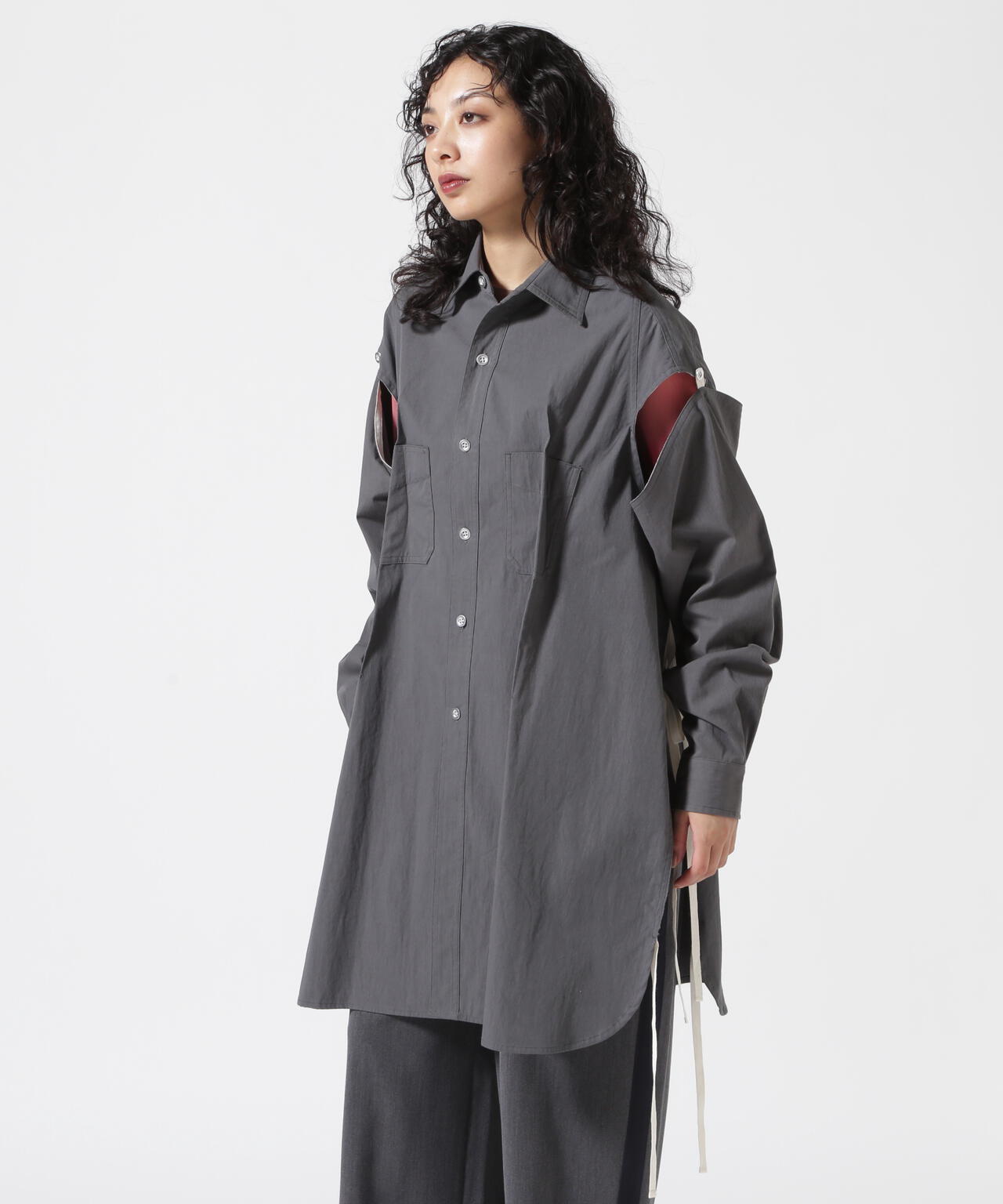 スリーブを取り外したノースリーブスタイルや、カットソーやメッシュトップスなどを合わせたレイヤードスタイルなど多様なスタイリングが愉しめる一着です。