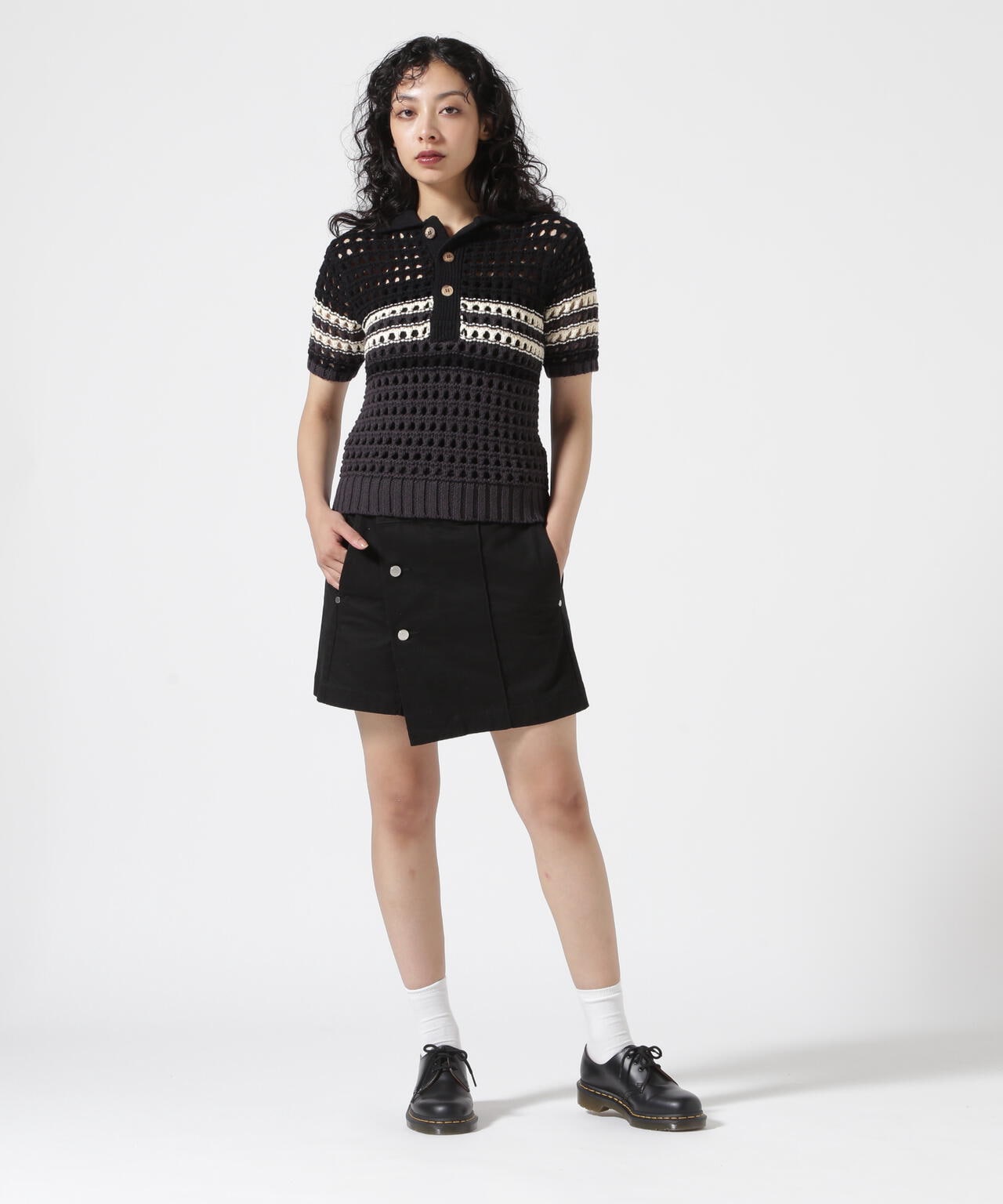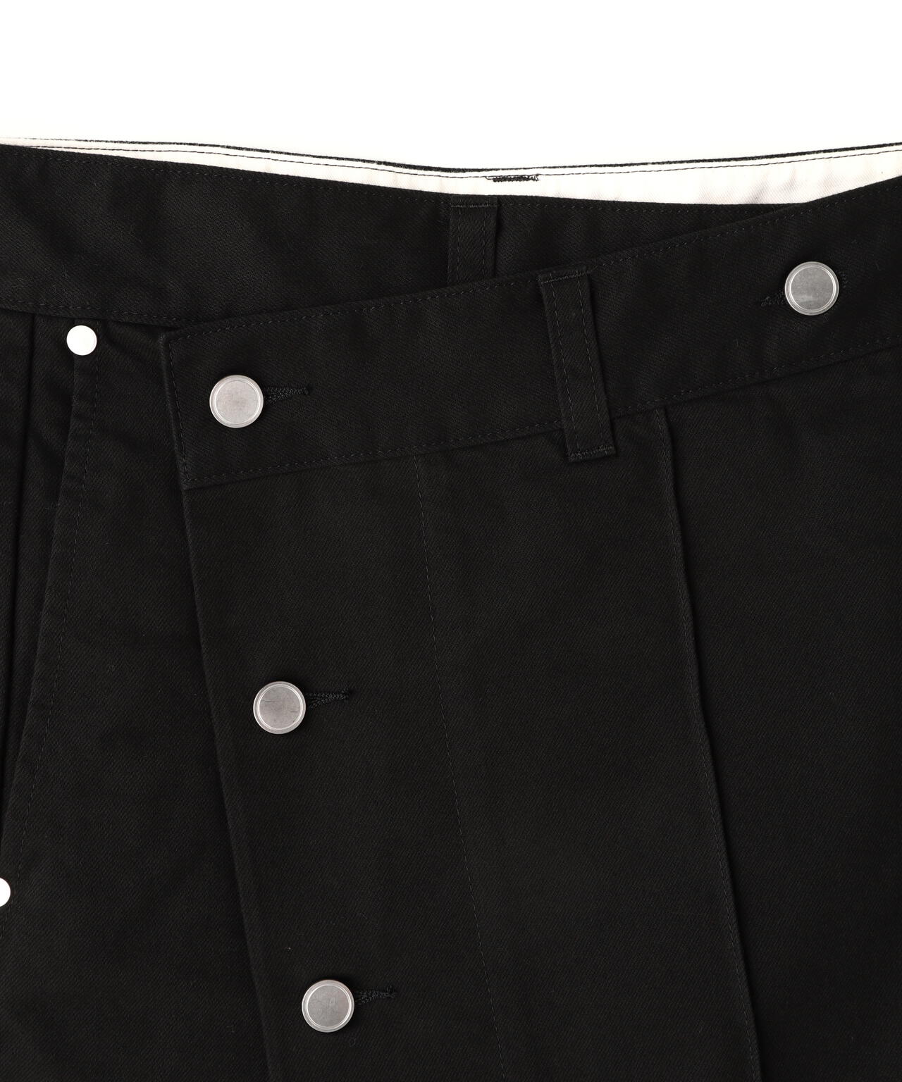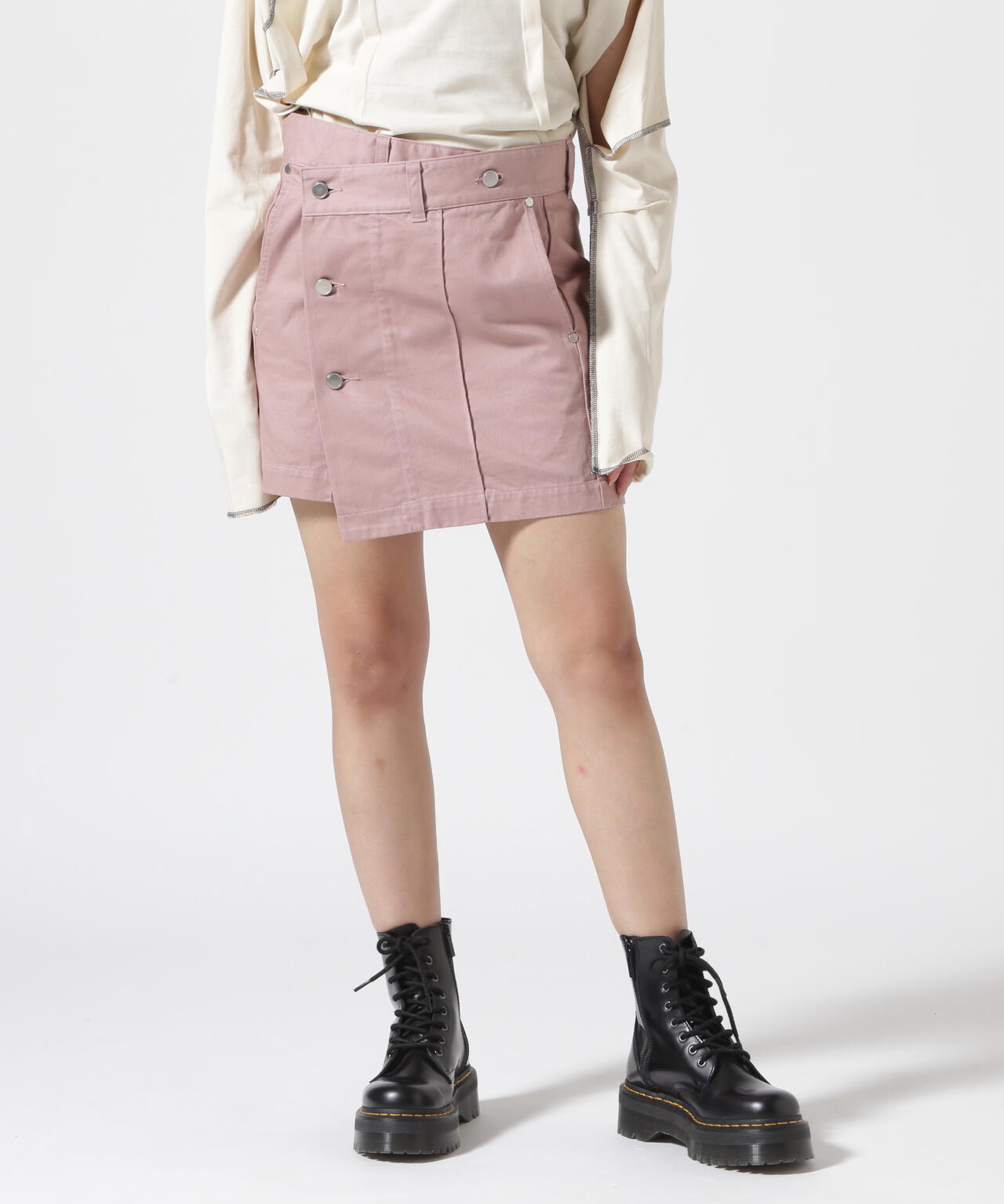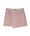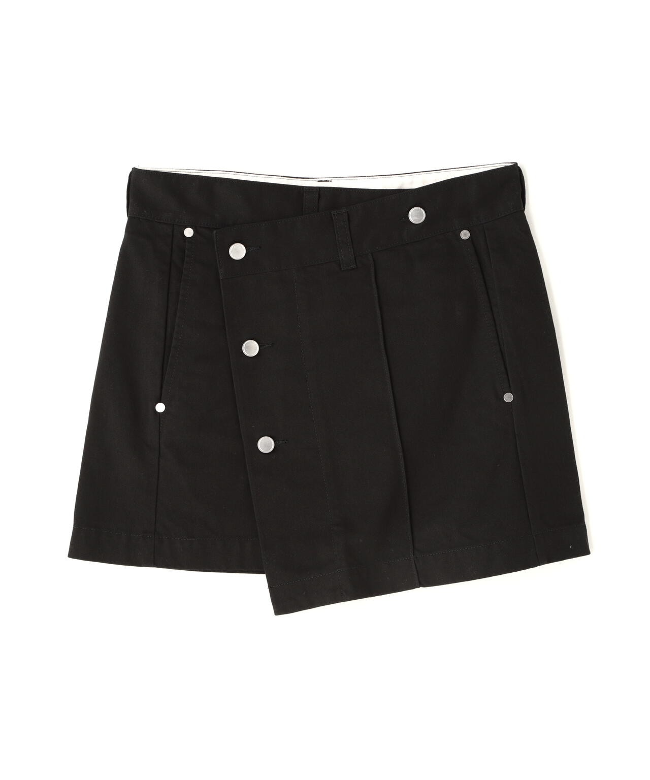 ウエストを布で包むようなデザインが印象的なミニラップスカート。
