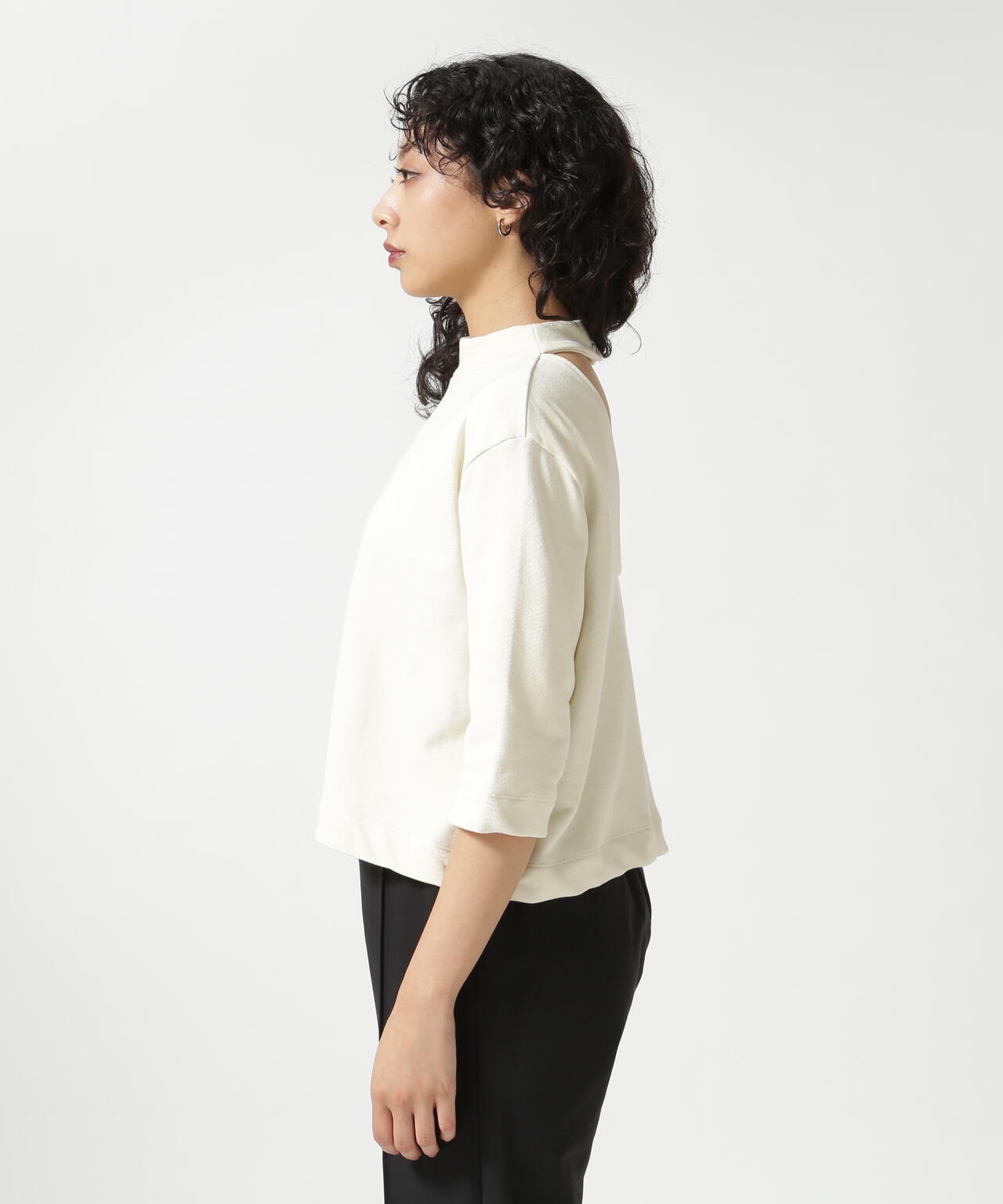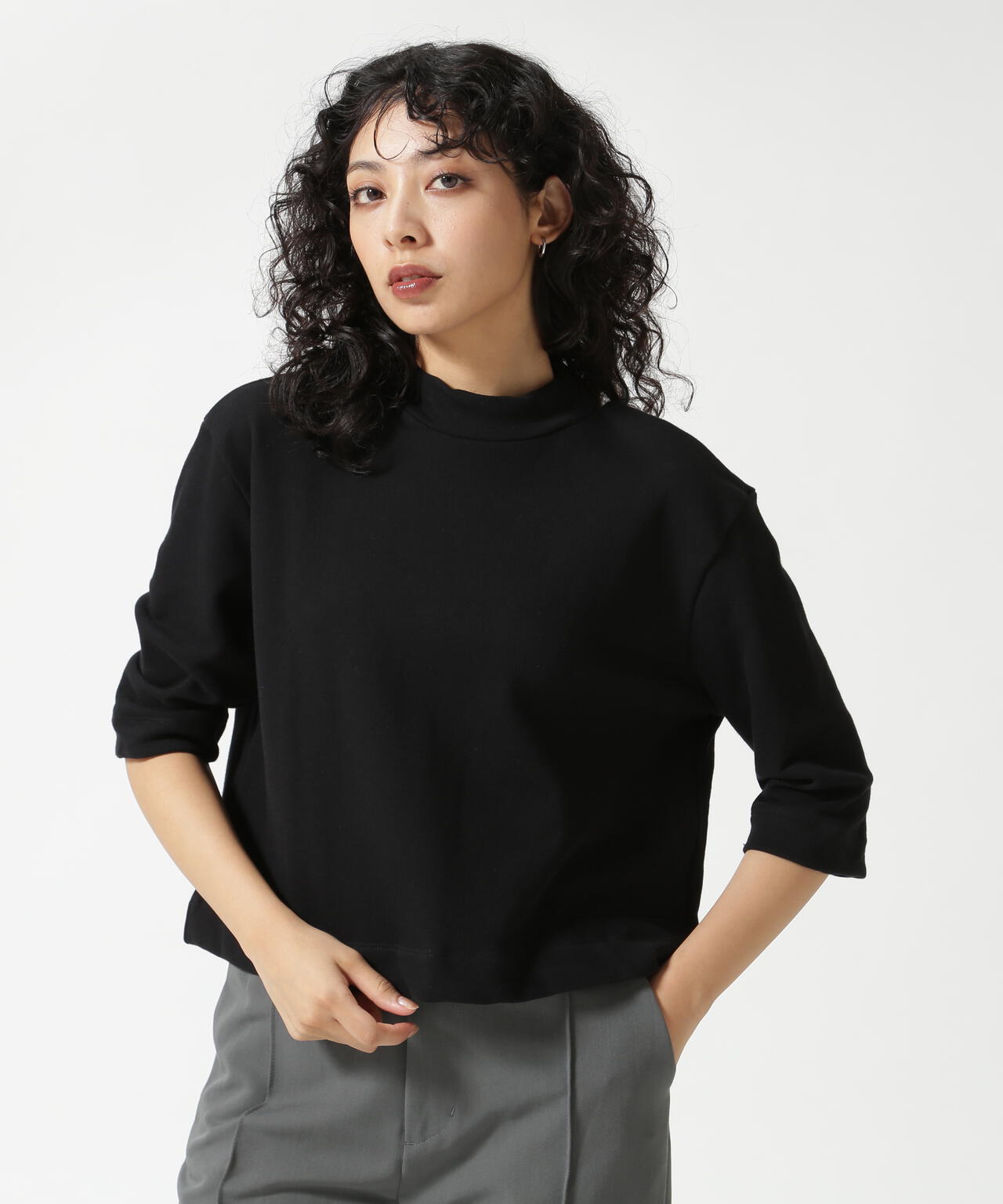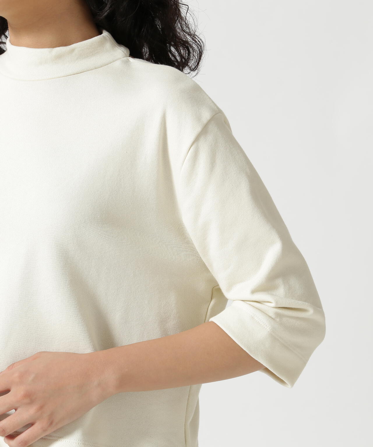 クロップド丈で様々なボトムスとバランスが取りやすく、シンプルなデザインながらも着映えするカットソーです。