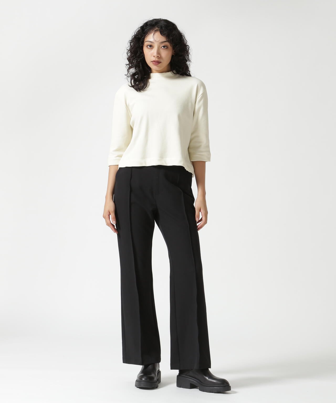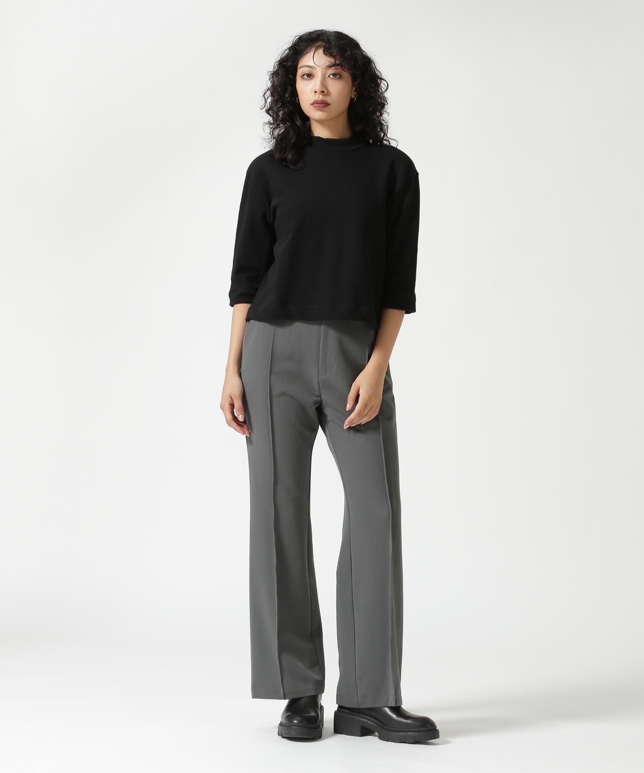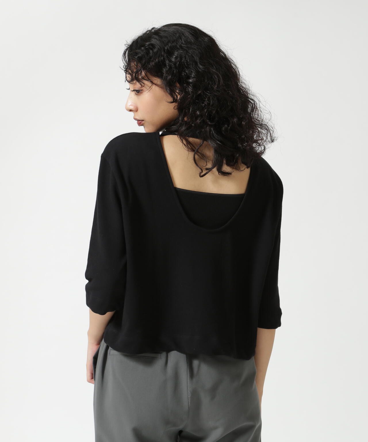 クロップド丈で様々なボトムスとバランスが取りやすく、シンプルなデザインながらも着映えするカットソーです。