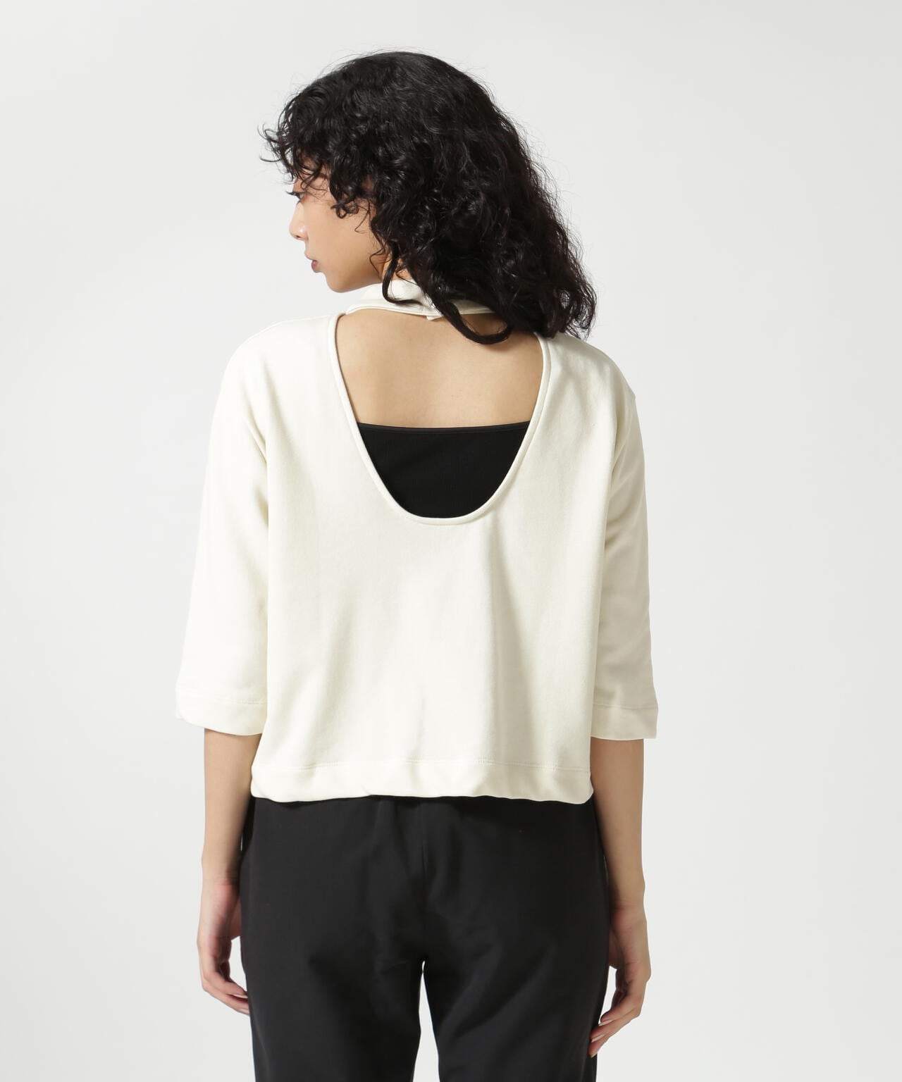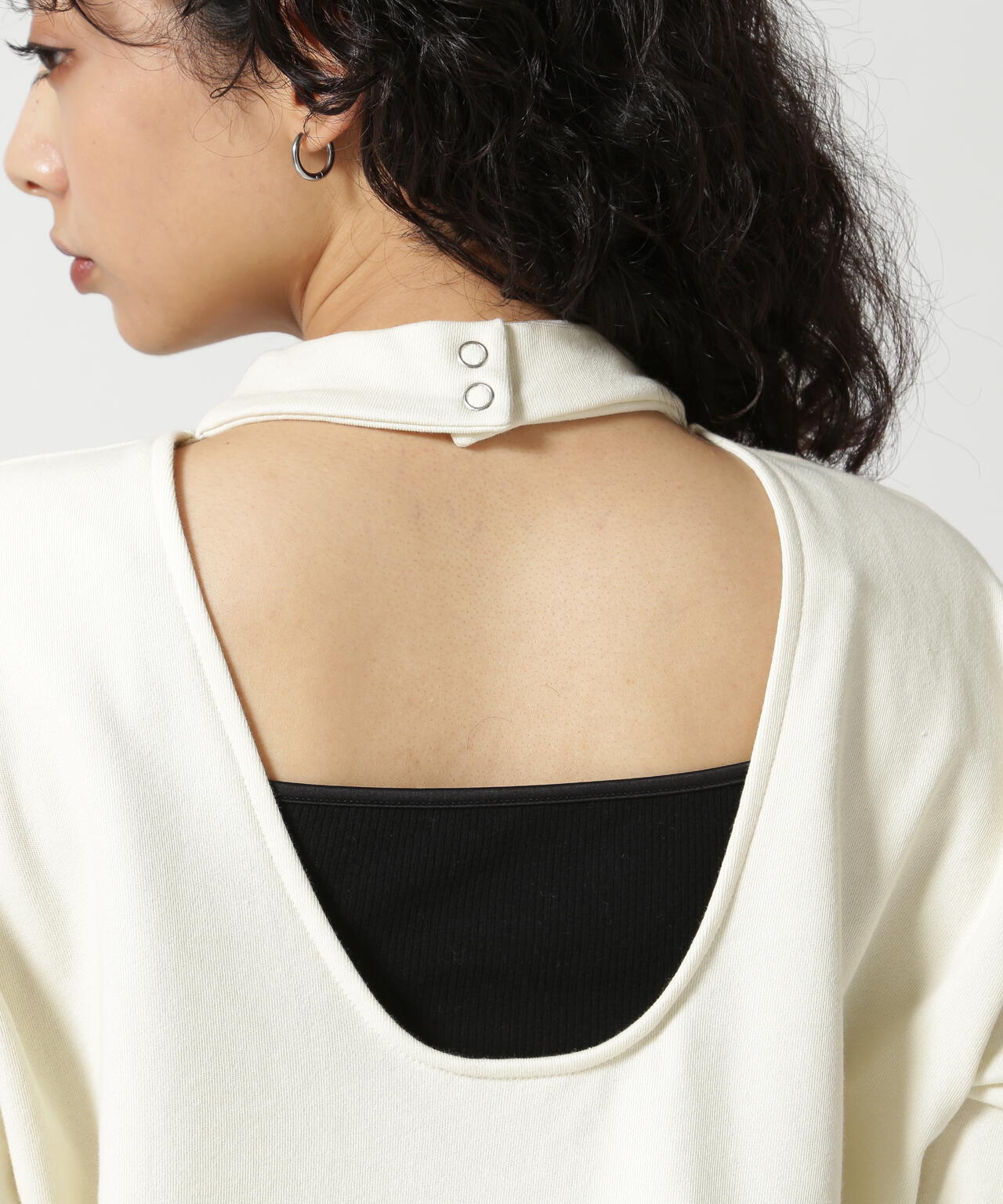 メンズライクなゆとりのあるサイズ感ながら、バックオープンデザインで女性らしく仕上げました。