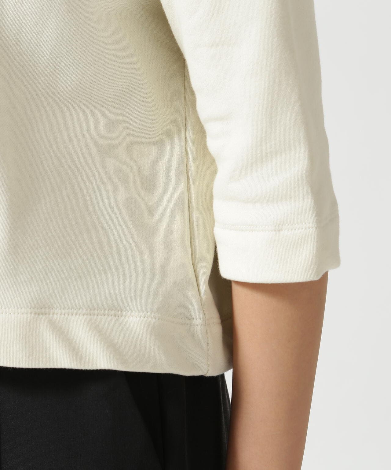 強撚糸を使用し、立体感とヴィンテージ感のある裏毛を使用したトップス。