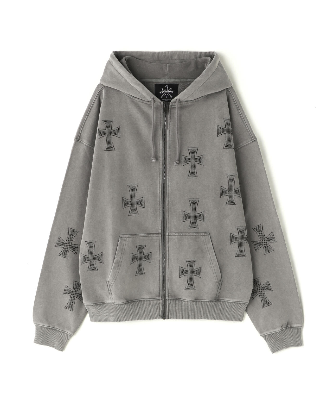 カンガルーポケットい被るようにデザインされたブランドネームのレタリング刺繍がほどよいアクセントになっています。