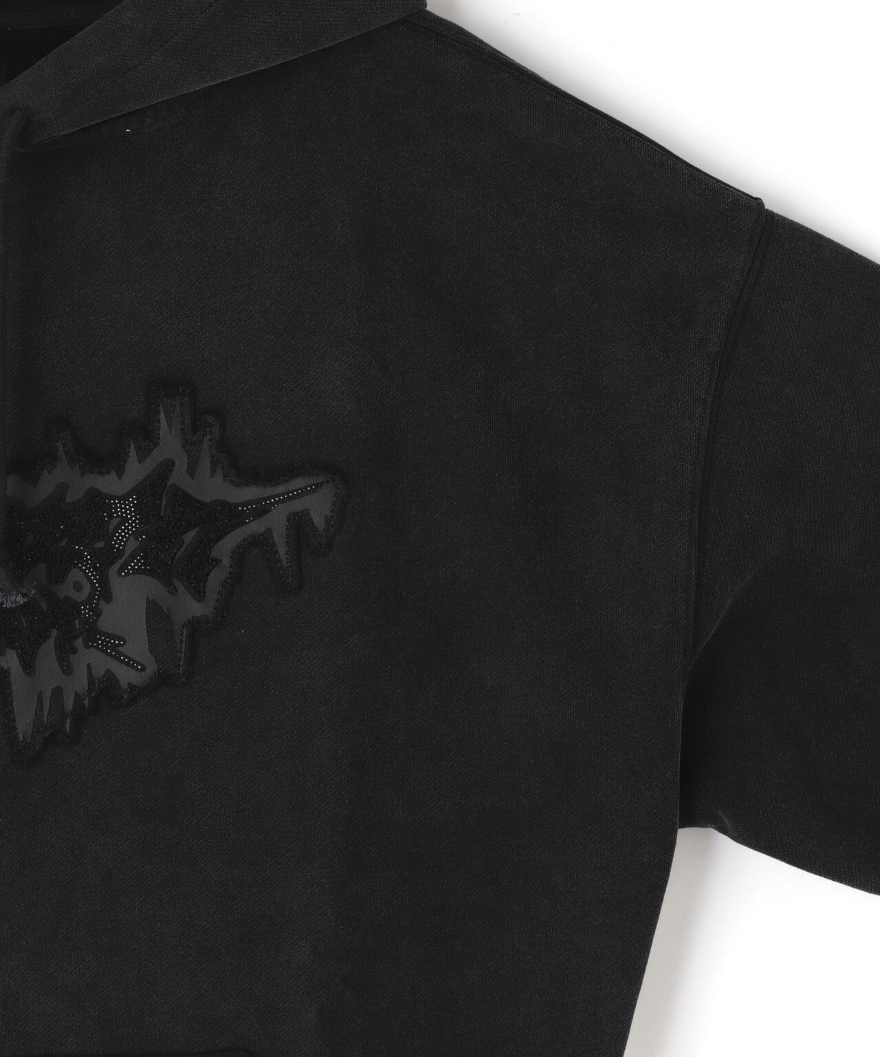 フロントにはロゴ刺繍にラインストーンをちりばめ、バックにダガーモチーフの刺繍をほどこしたアイコニックなデザイン。