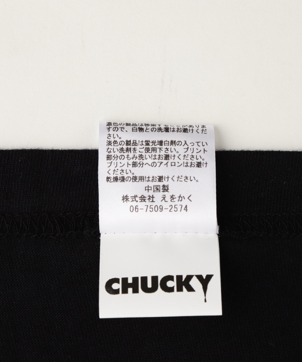 世界的に有名なホラー映画「チャイルド・プレイ」のチャッキーをバックプリントに飾った一着。
