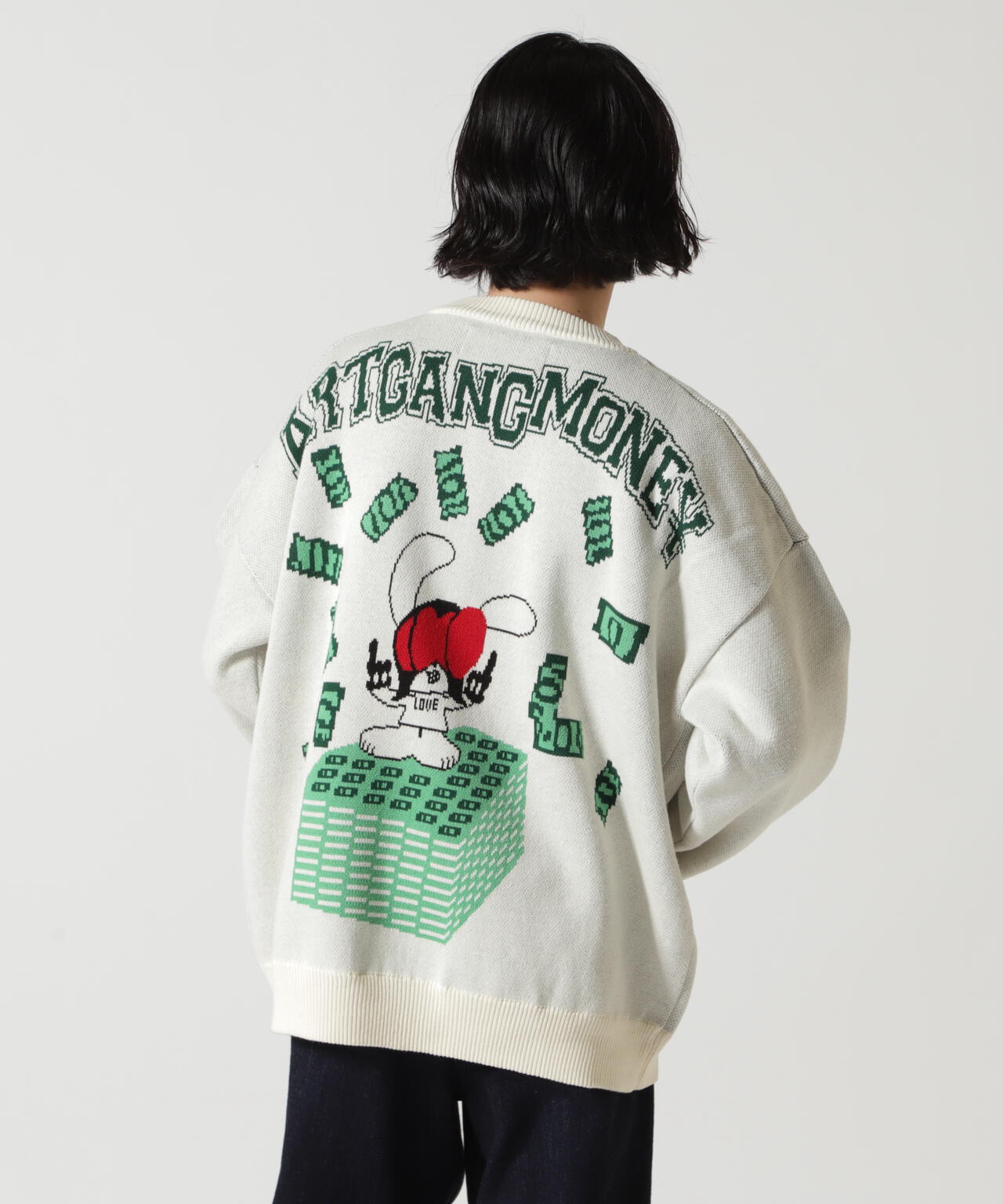 中野氏ならではアートワークを色濃く投影したデザインを肉厚なジャガード織りニットに落とし込んだこだわりのスペシャルピースです。