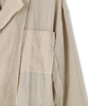 切りっぱなしデザインと太番手のステッチがポイントのトレンチコート。