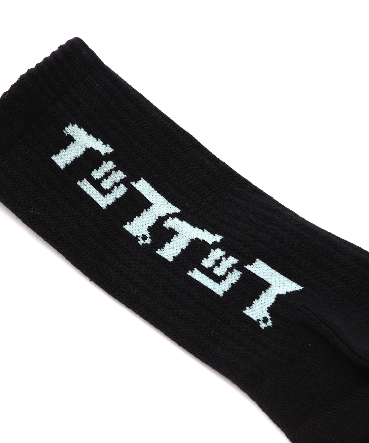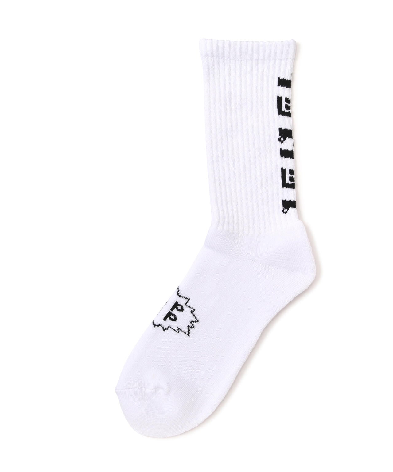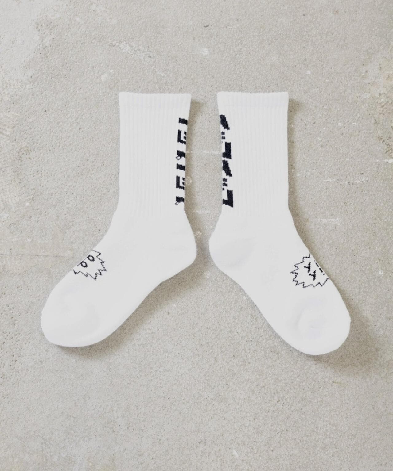 インパクトのあるカタカナロゴをジャガードで編み込んだクルーソックス