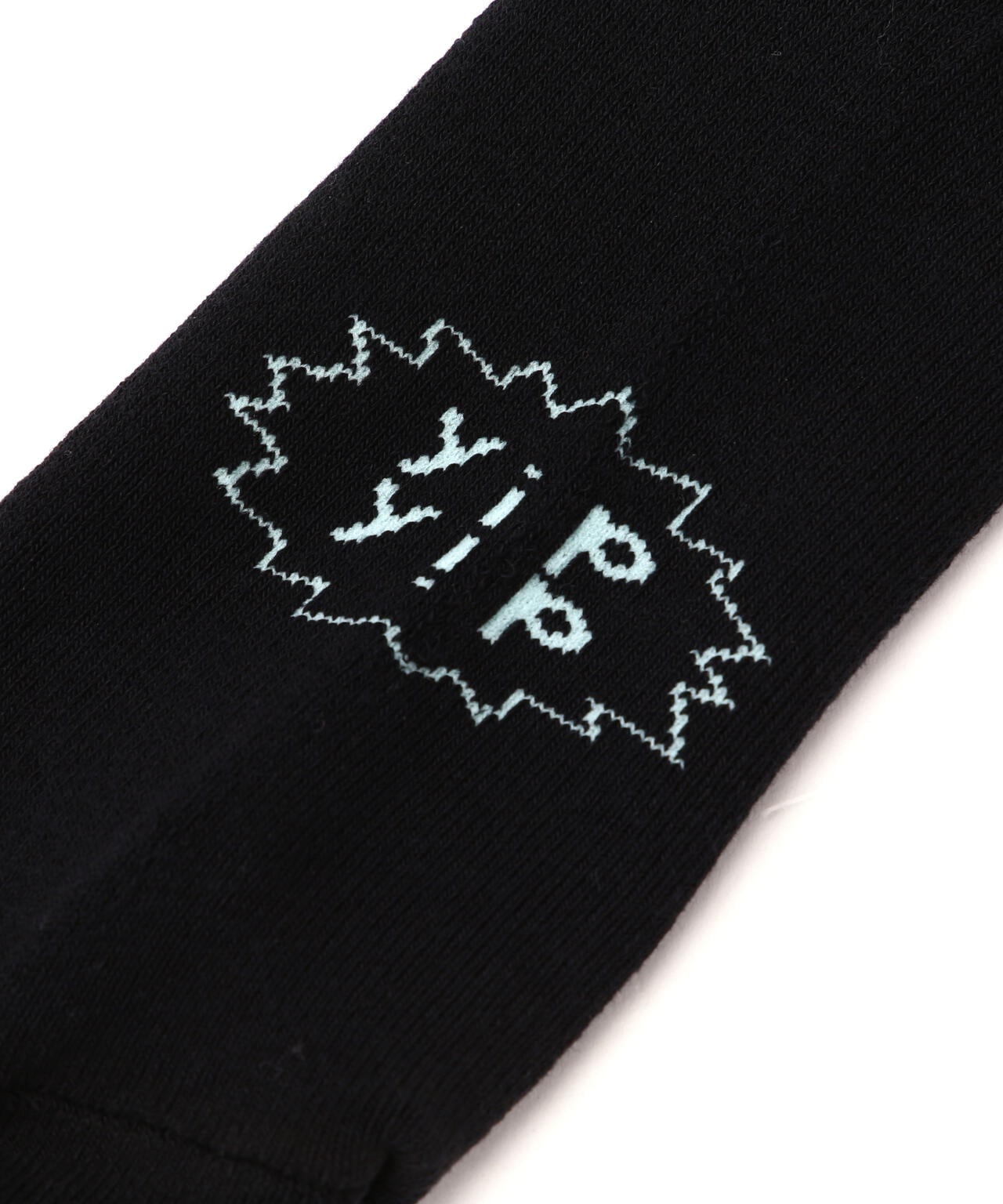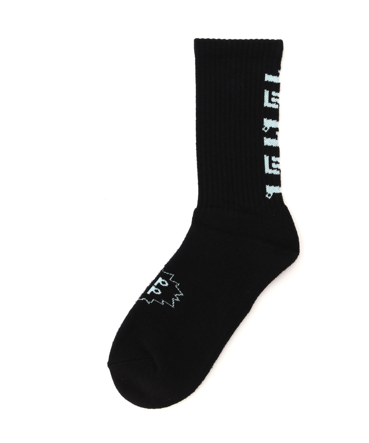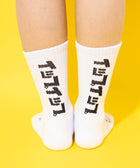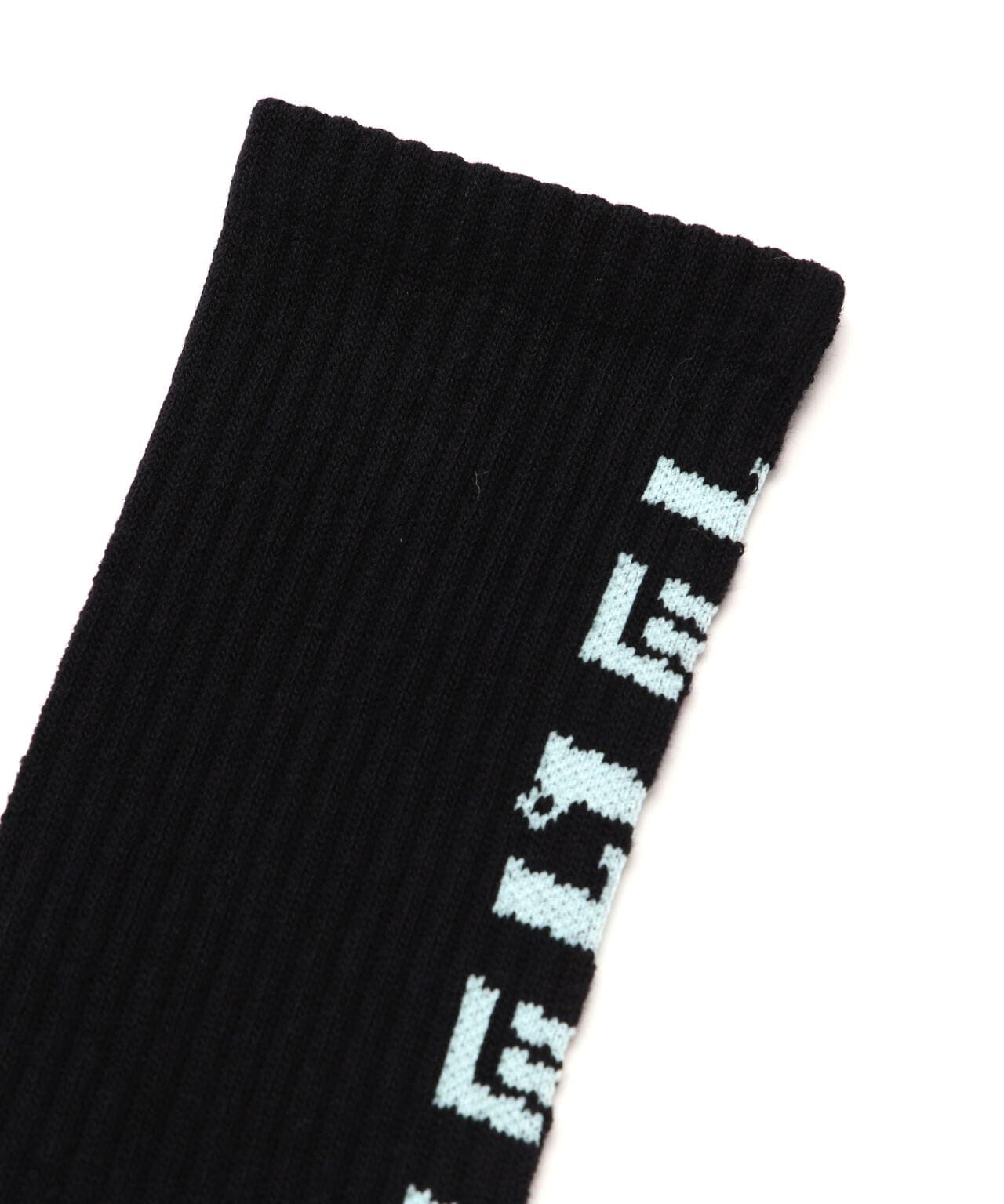 インパクトのあるカタカナロゴをジャガードで編み込んだクルーソックス