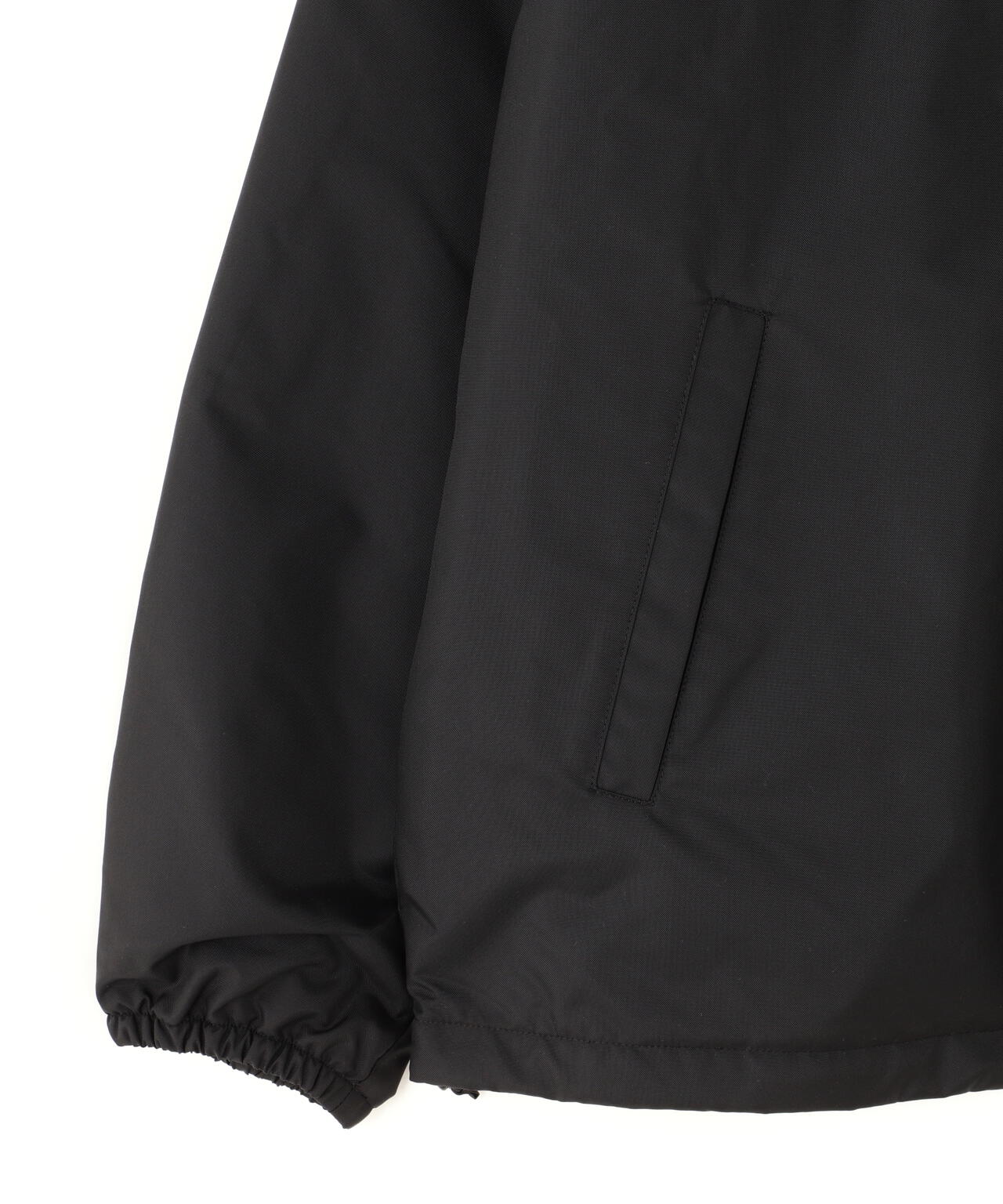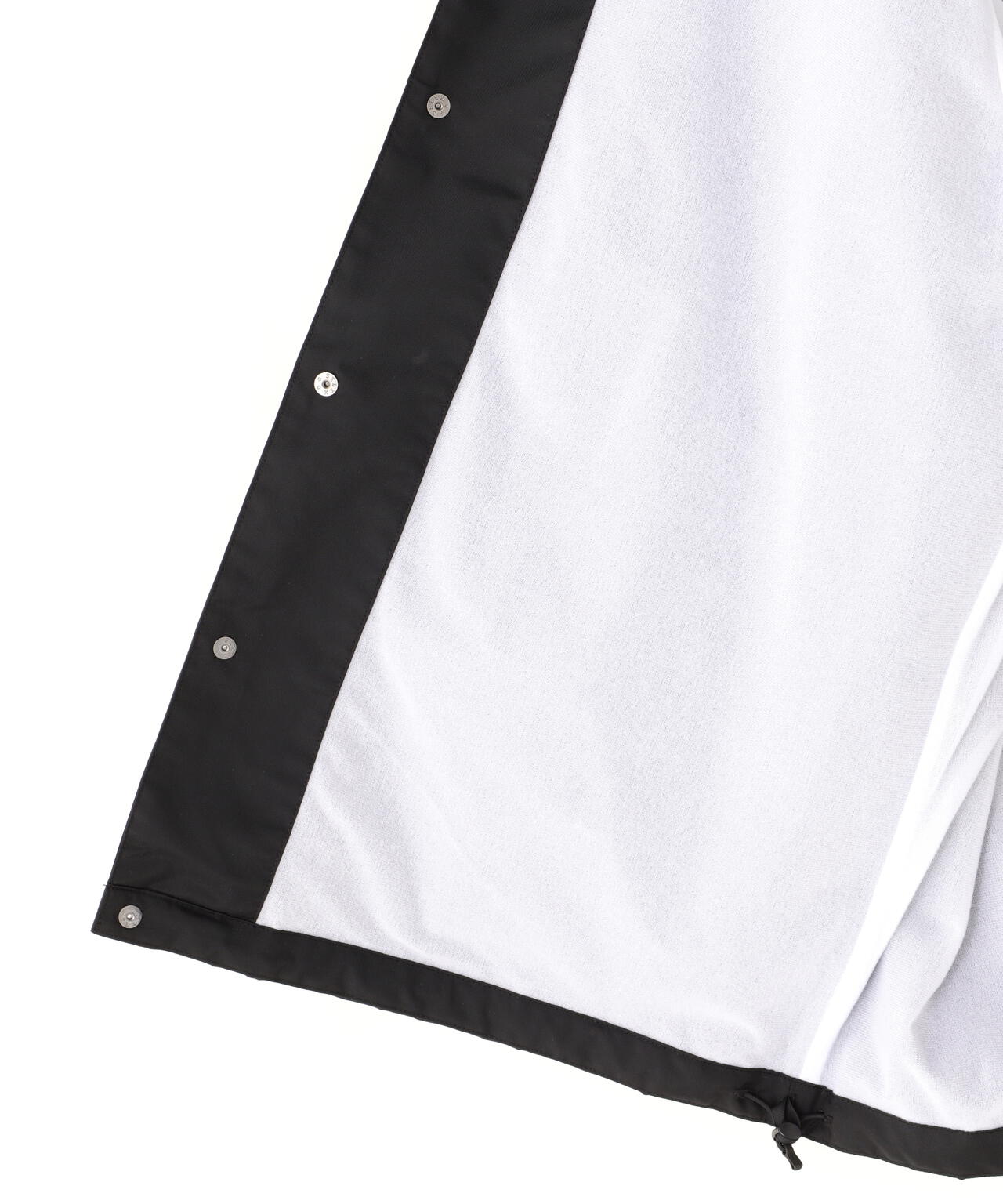 はっ水加工を施したナイロンオックス生地は適度な厚みで、上品な光沢感が特徴です。裏地は軽く着心地のよい起毛トリコット生地。フロントのドットボタンは、開衿で着用しても襟の形が美しい位置に配置しています。