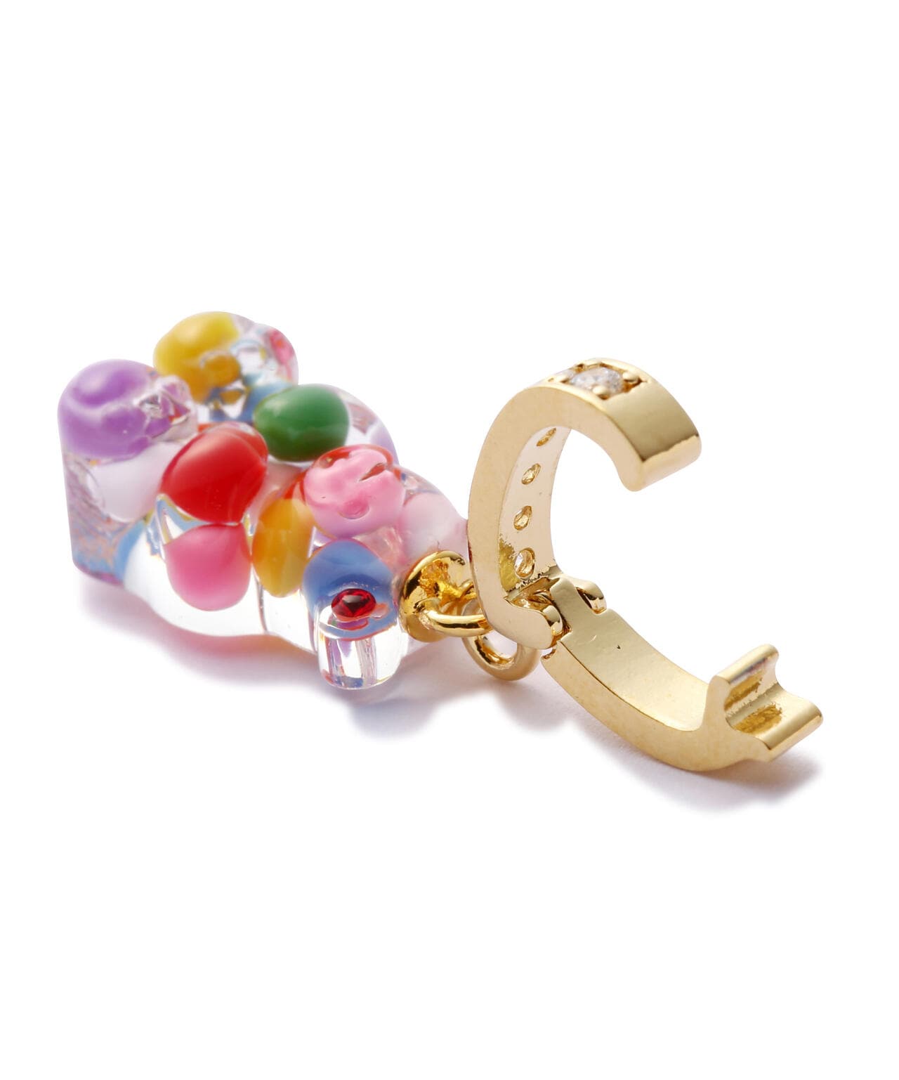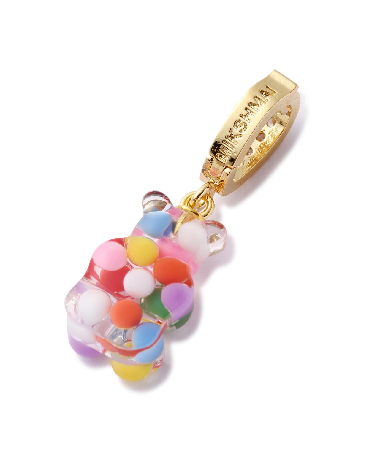 ミクシマイのアイコニックなキャンディベアに、カラーボールやパールを埋め込んだモチーフペンダント単体です。