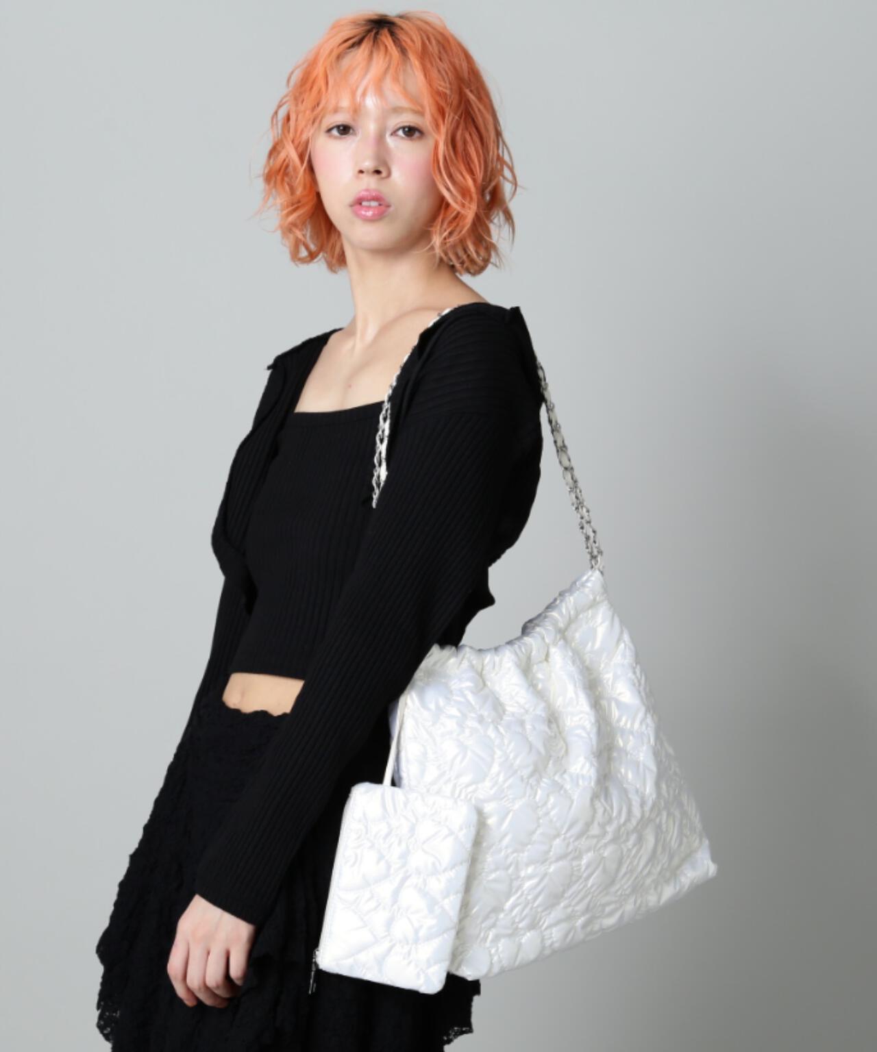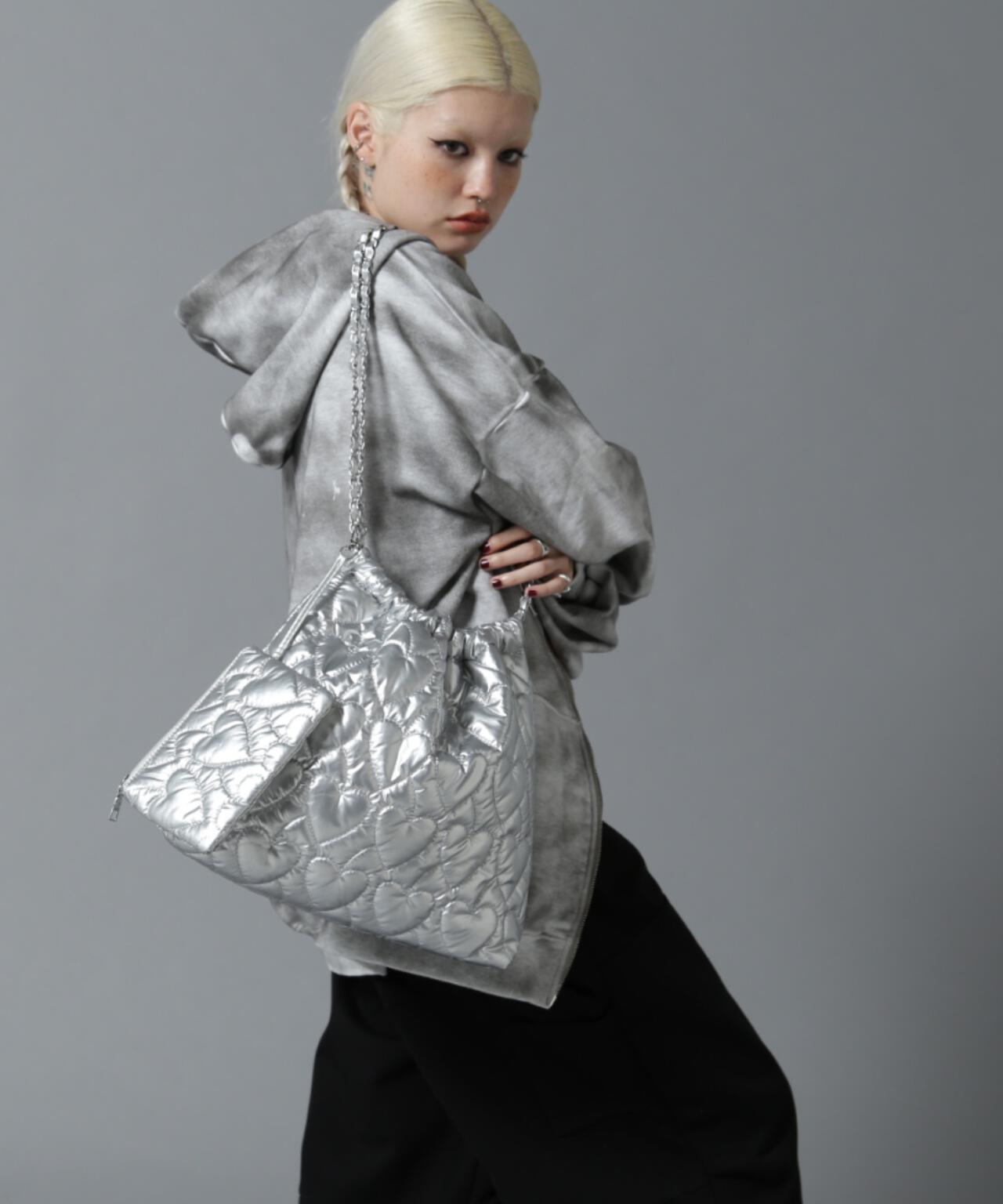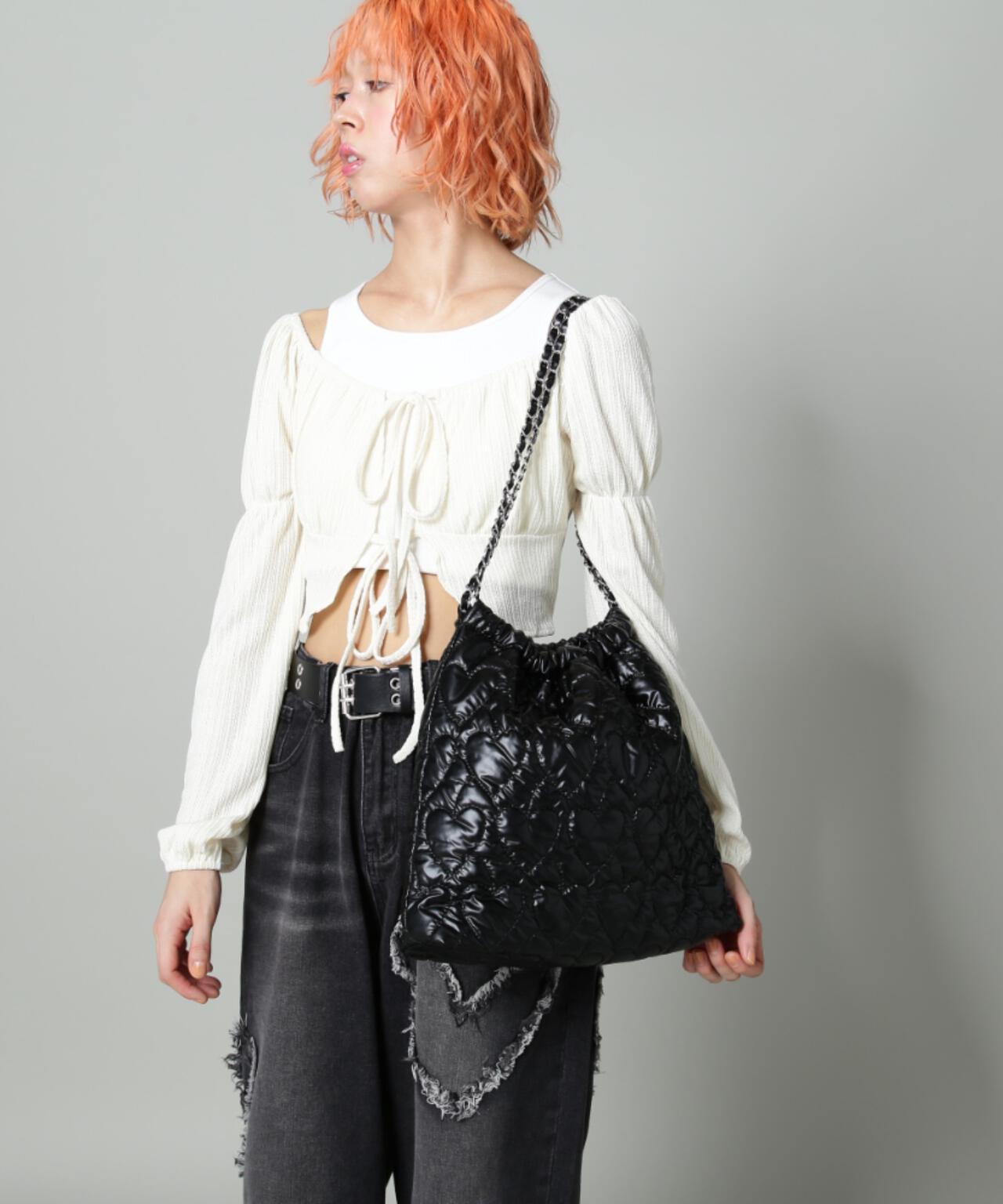 ハートモチーフのキルティングが可愛らしいショルダーバッグ。