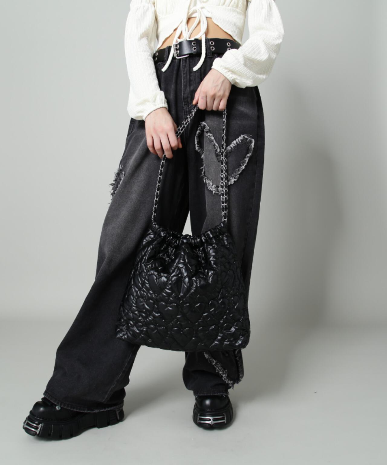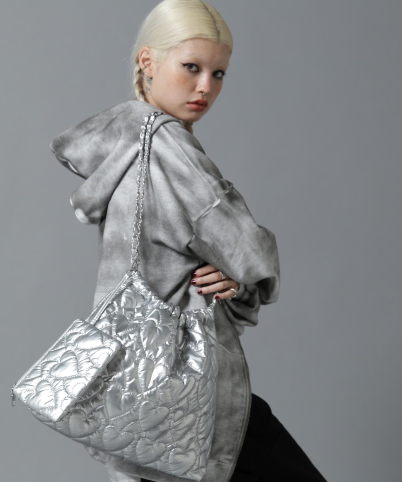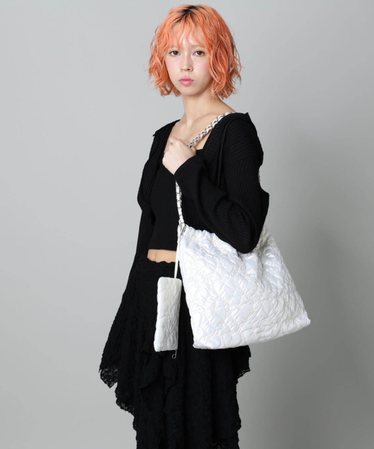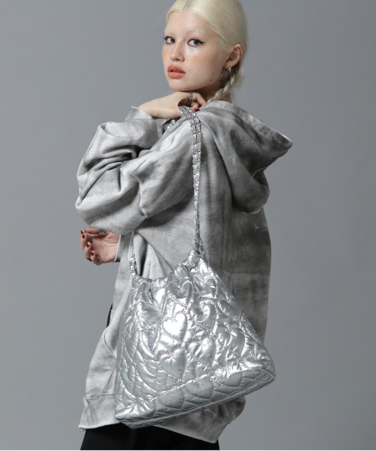 ハートモチーフのキルティングが可愛らしいショルダーバッグ。