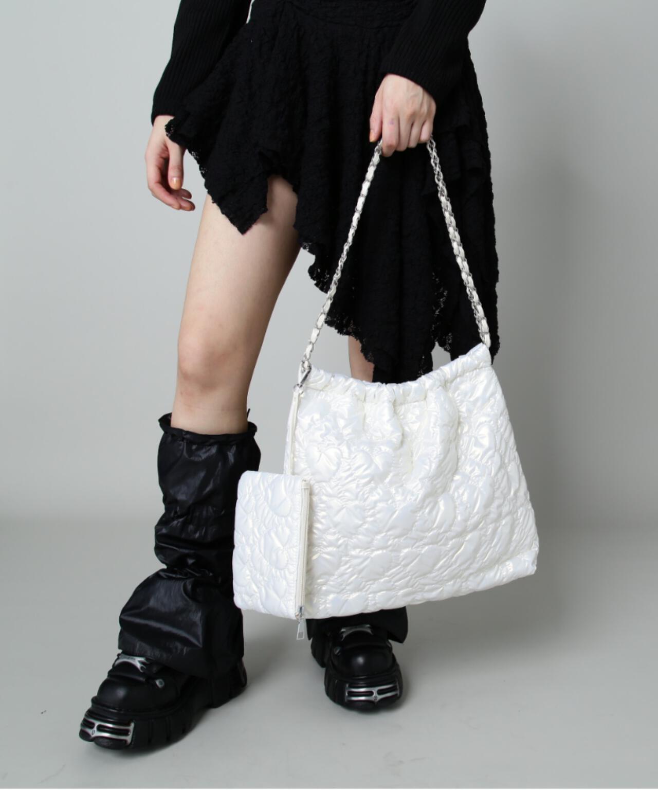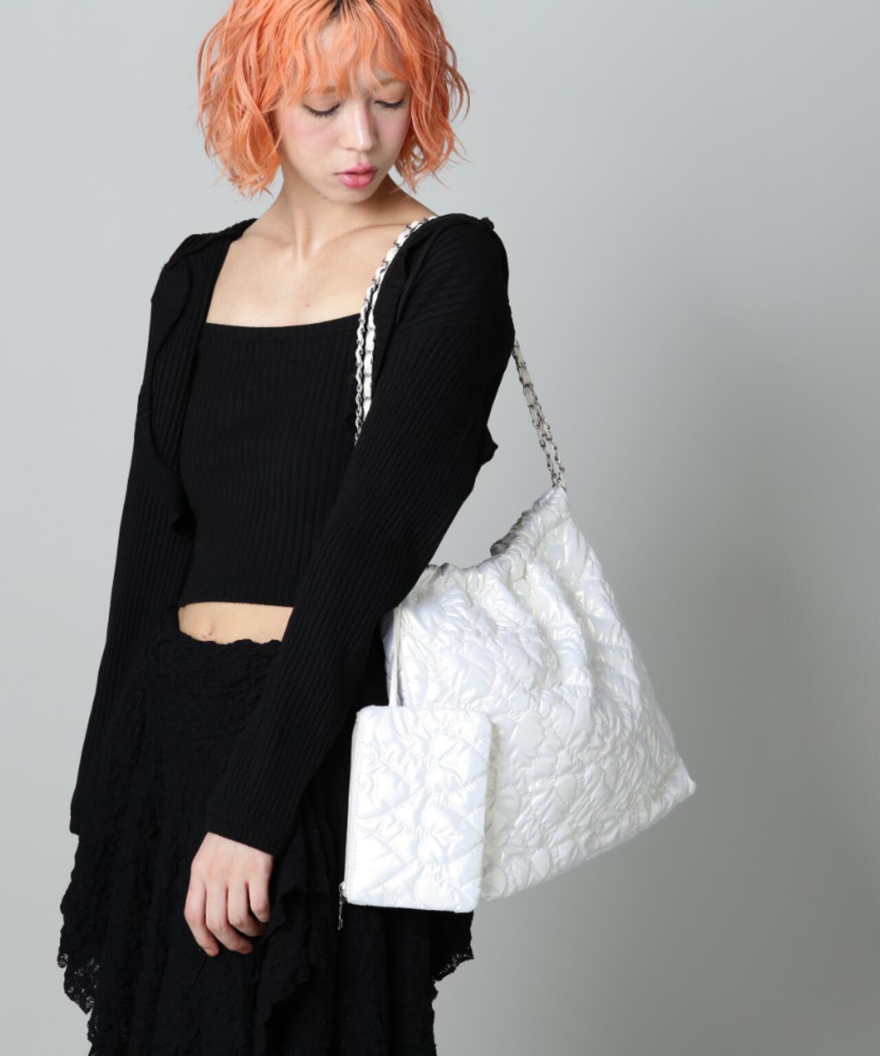 ショルダー部分がチェーンショルダーになっている為上品な印象を与えてくれます。