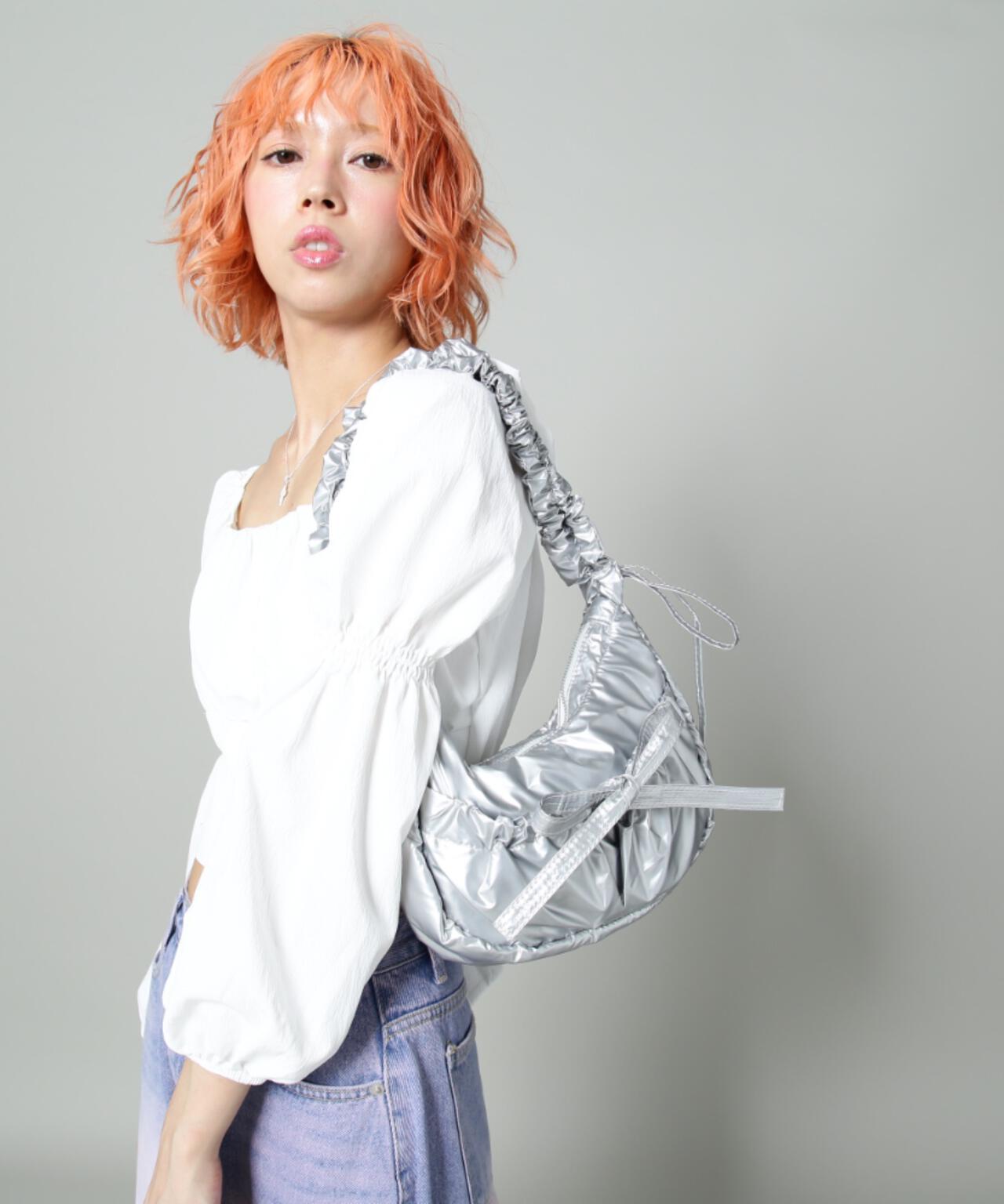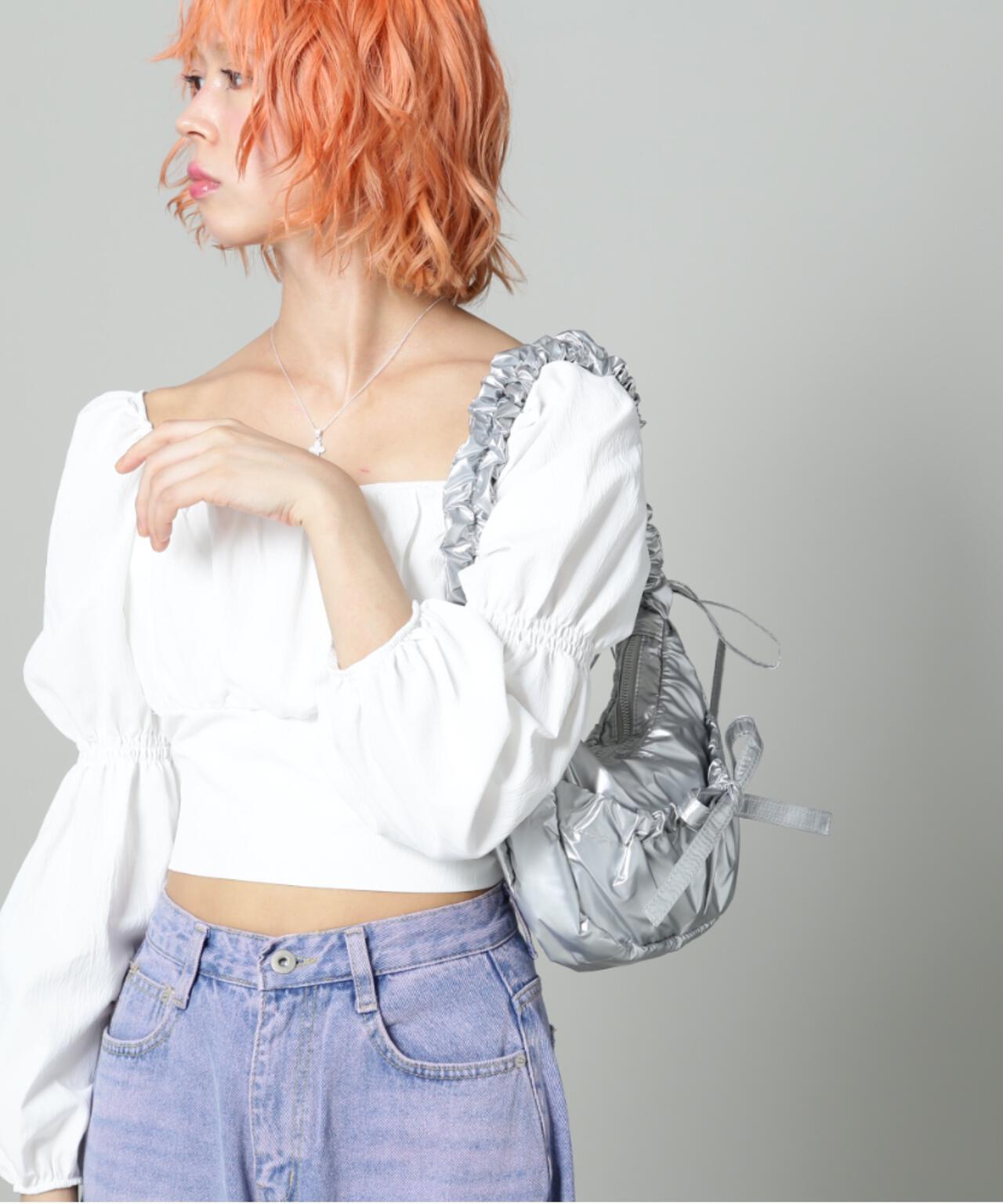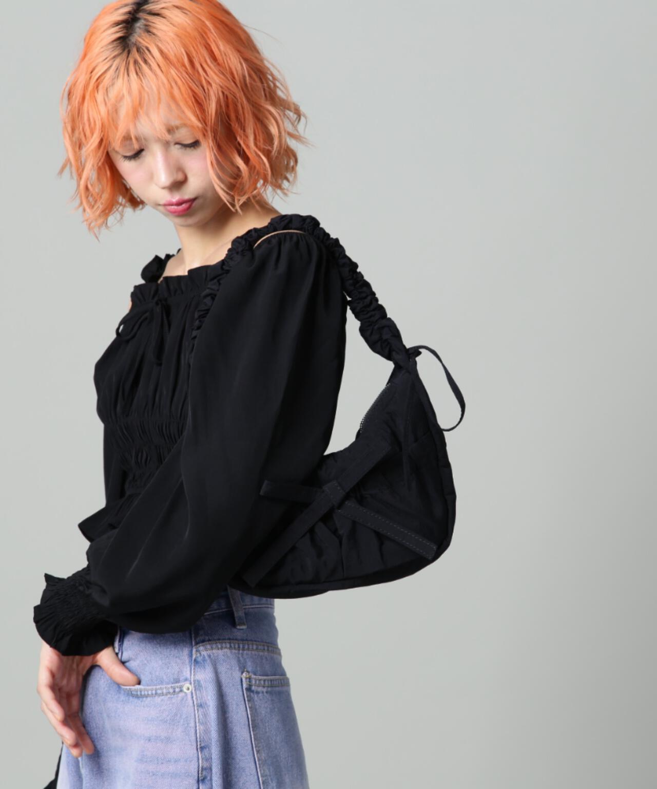 サイドのリボンでショルダー部分を調整していただけるのでお好みな長さに調節していただけます。
