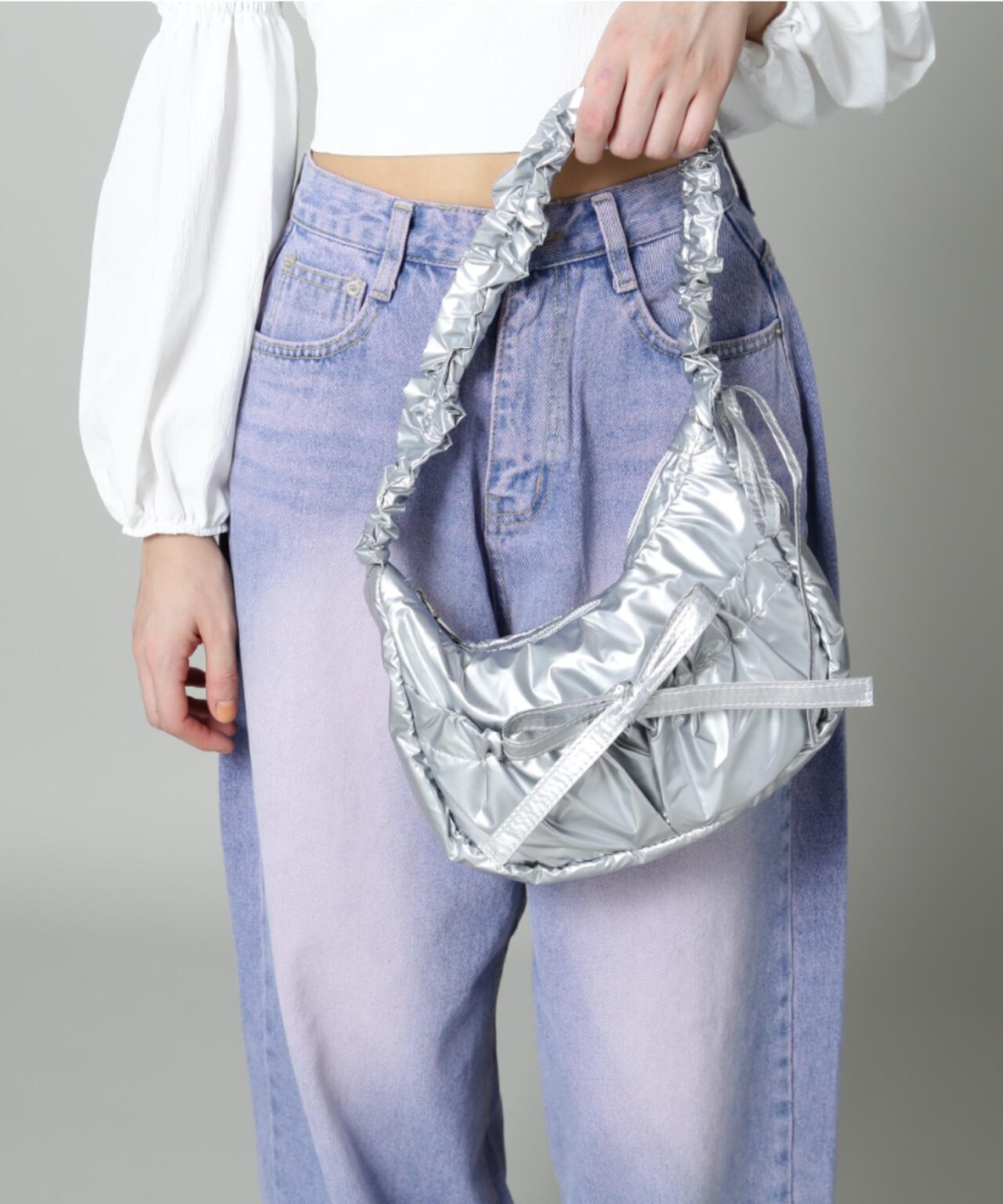 フロントの大ぶりなリボンがポイントになっているショルダーバッグ。
