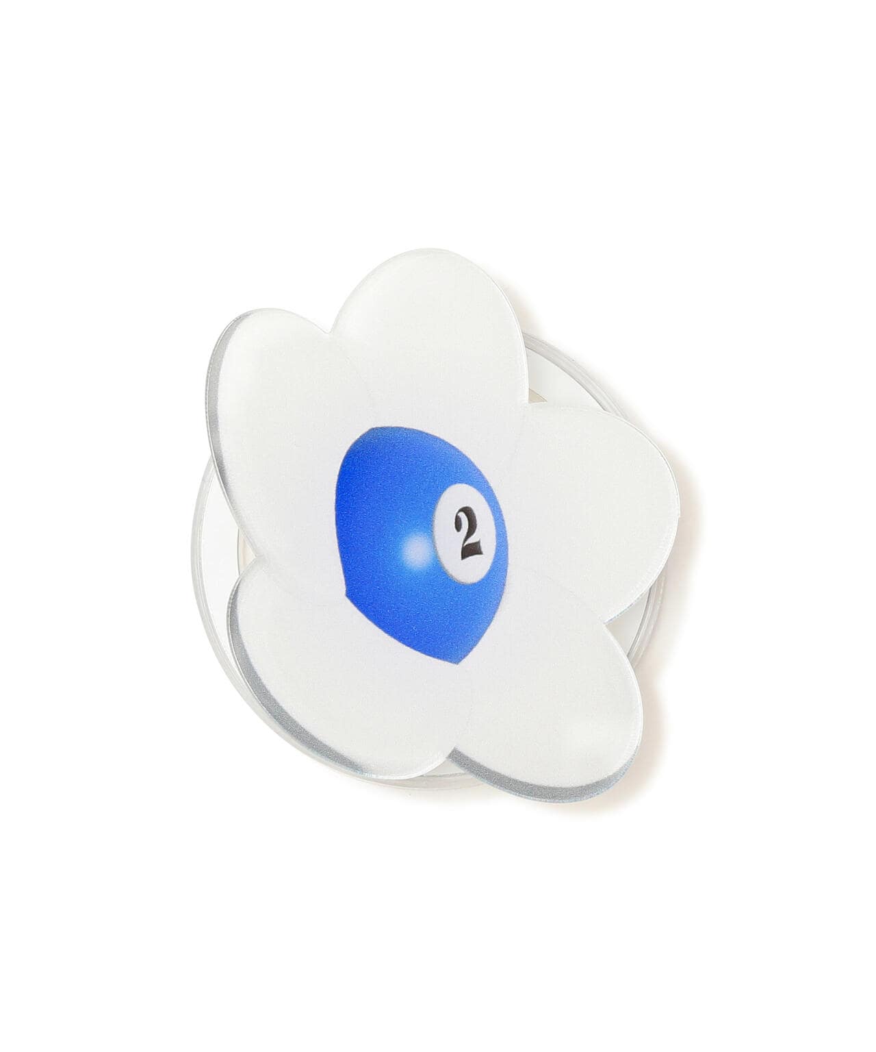 ビリヤードボールとフラワーを掛け合わせたポップなモチーフがアクセントのマグネット式スマホグリップ。