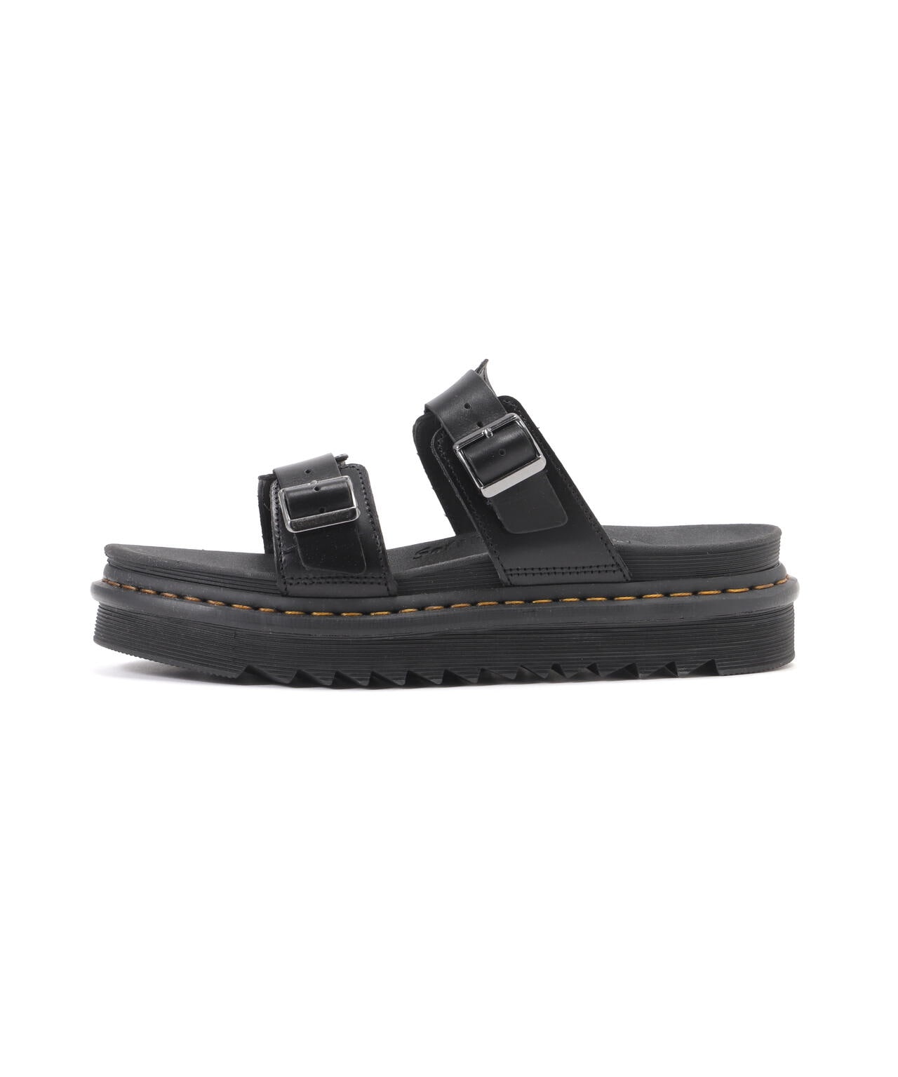 毎シーズン人気のサンダルにゼブリラスコレクションが新たに登場。快適な履き心地にこだわった超軽量のZIGGYソールを搭載。シャークソール状のトレッドが地面をしっかりと捉え安定した歩行を供給します。また独自の加圧圧着式グッドイヤーウェルト製法で底付けされており、堅牢性も備えたサンダルに仕上がっています。マイルズ スライドサンダルにはストラップが2本付いており、ウェルト部分のイエローステッチがドクターマーチンのDNAを表しています。