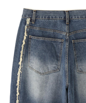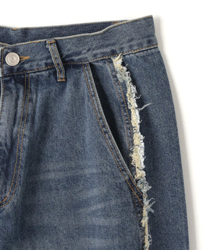 大胆なフリンジデザインを両サイドに施したSISならではの遊び心とストリート感が光るデニムパンツ。