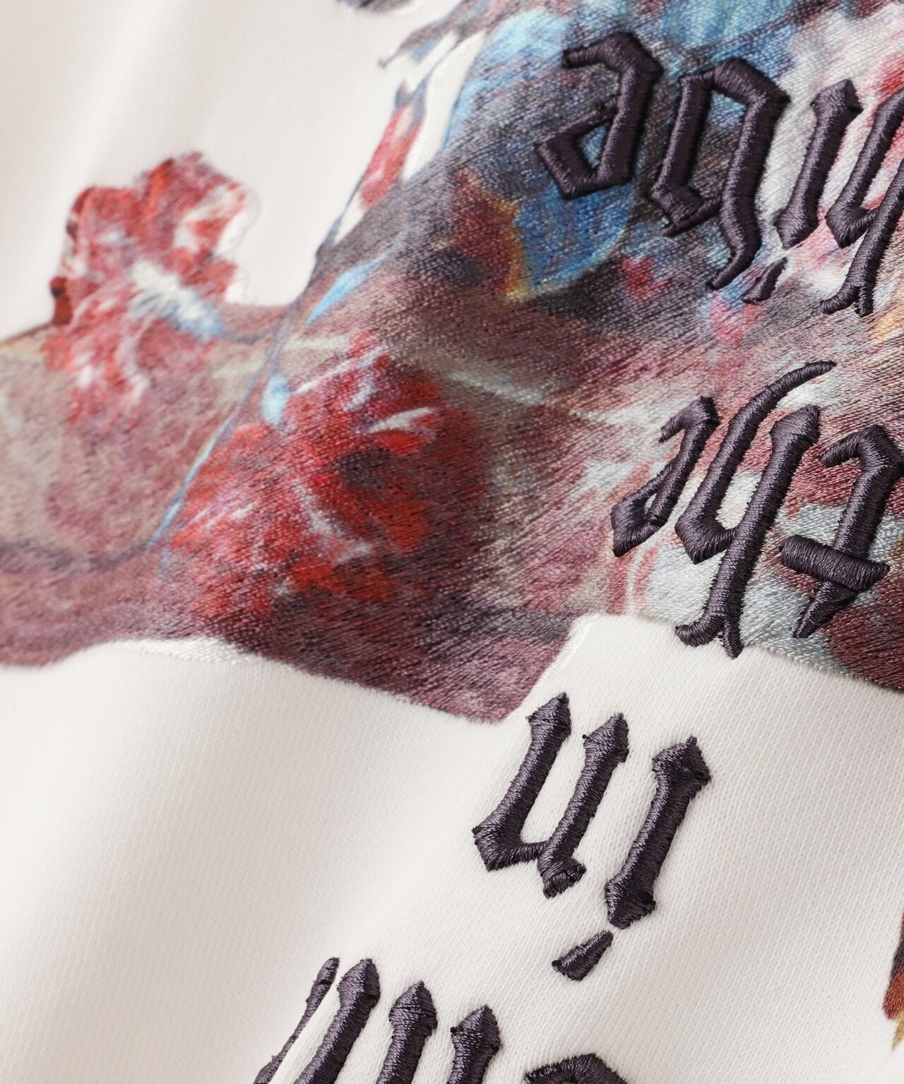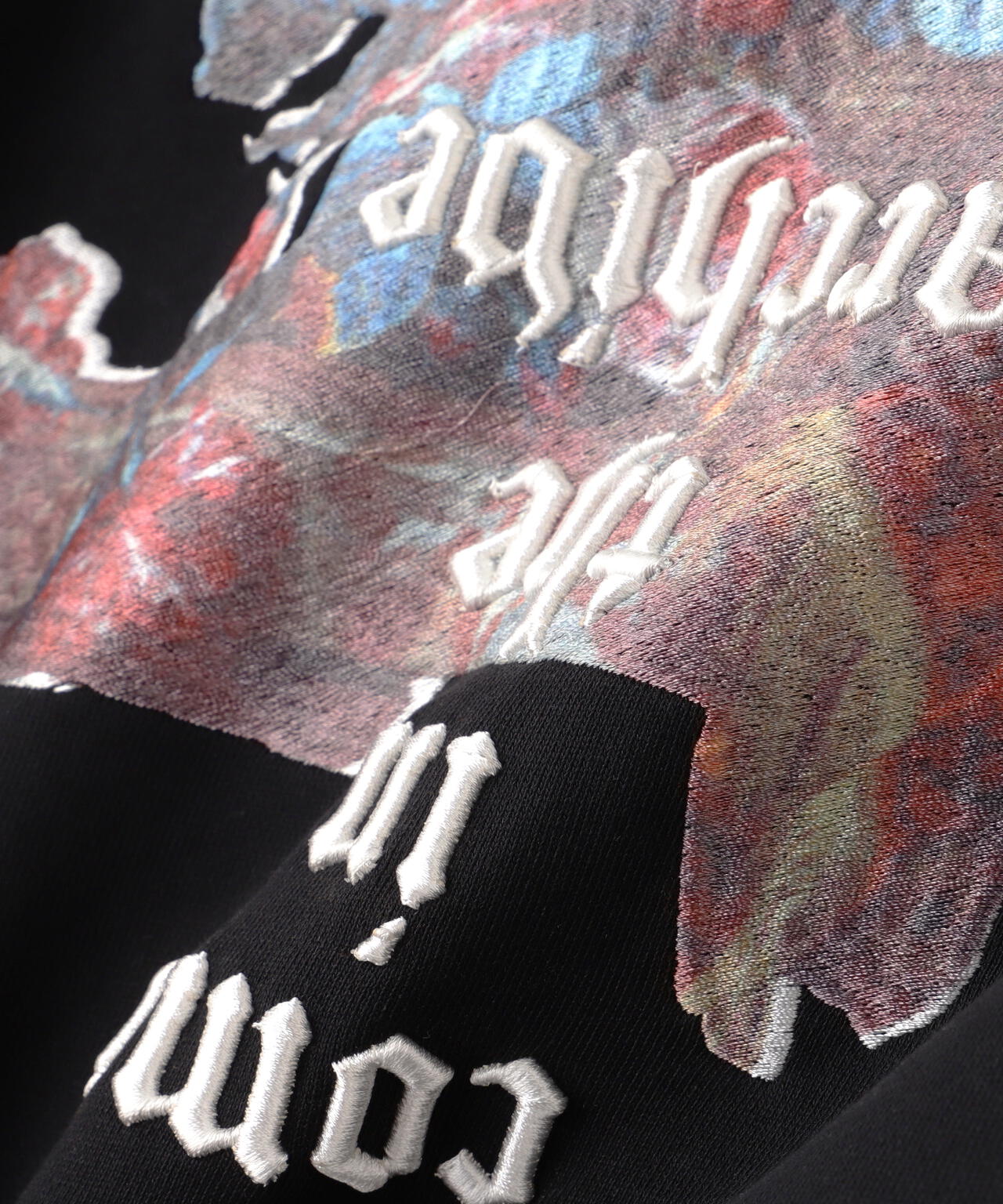 バックサイドにオリジナルグラフィックとブランドシグネチャーを重ねた存在感たっぷりのプルオーバーパーカー。