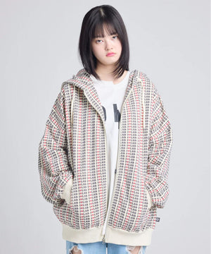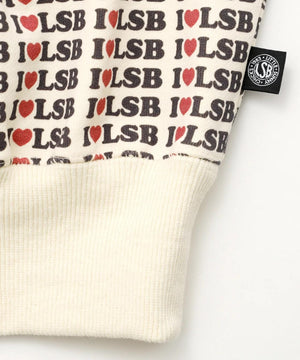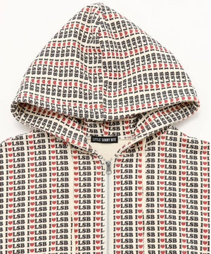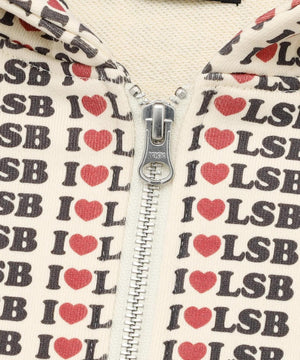 I♡LSBのリバイバル柄が360度どこから見ても可愛いオリジナルグラフィックのジップアップフーディは、little sunny biteが得意なヴィンテージ加工感を施していて、ジェンダーレスで着用できます。
