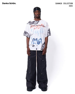 大胆なタイダイ柄とインパクト抜群のグラフィックアートが融合した、唯一無二の存在感を放つTシャツ。