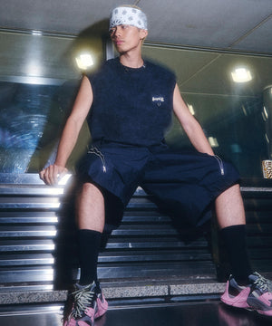 ボディは身幅に大胆なゆとりを持たせたルーズなシルエット。タイトなタンクトップやTシャツ、ブラトップなどインナーの着合わせ次第で多様なスタイリングが愉しめる男女兼用アイテムです。