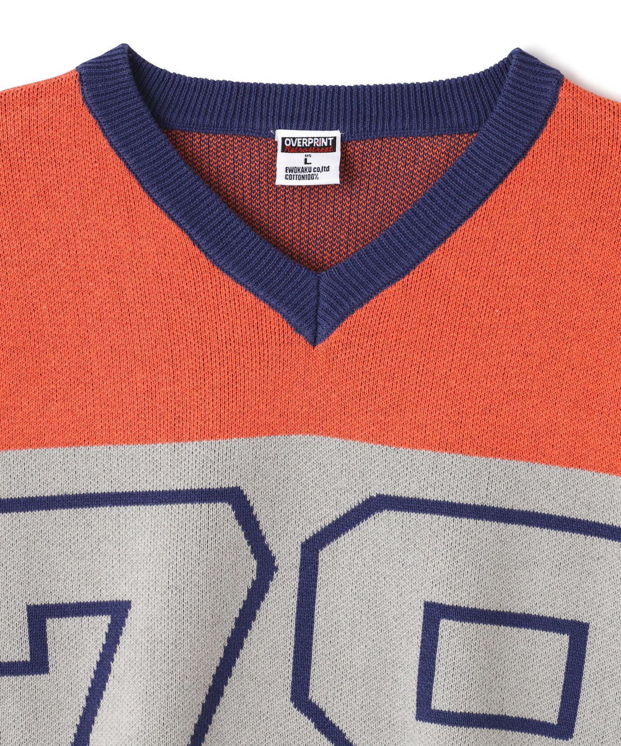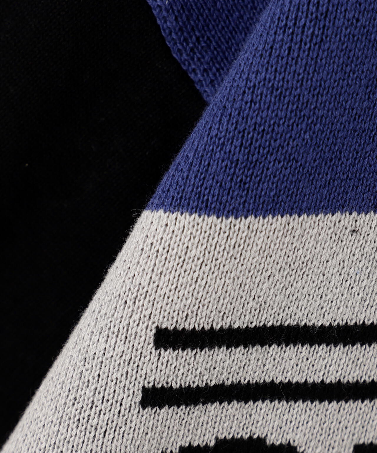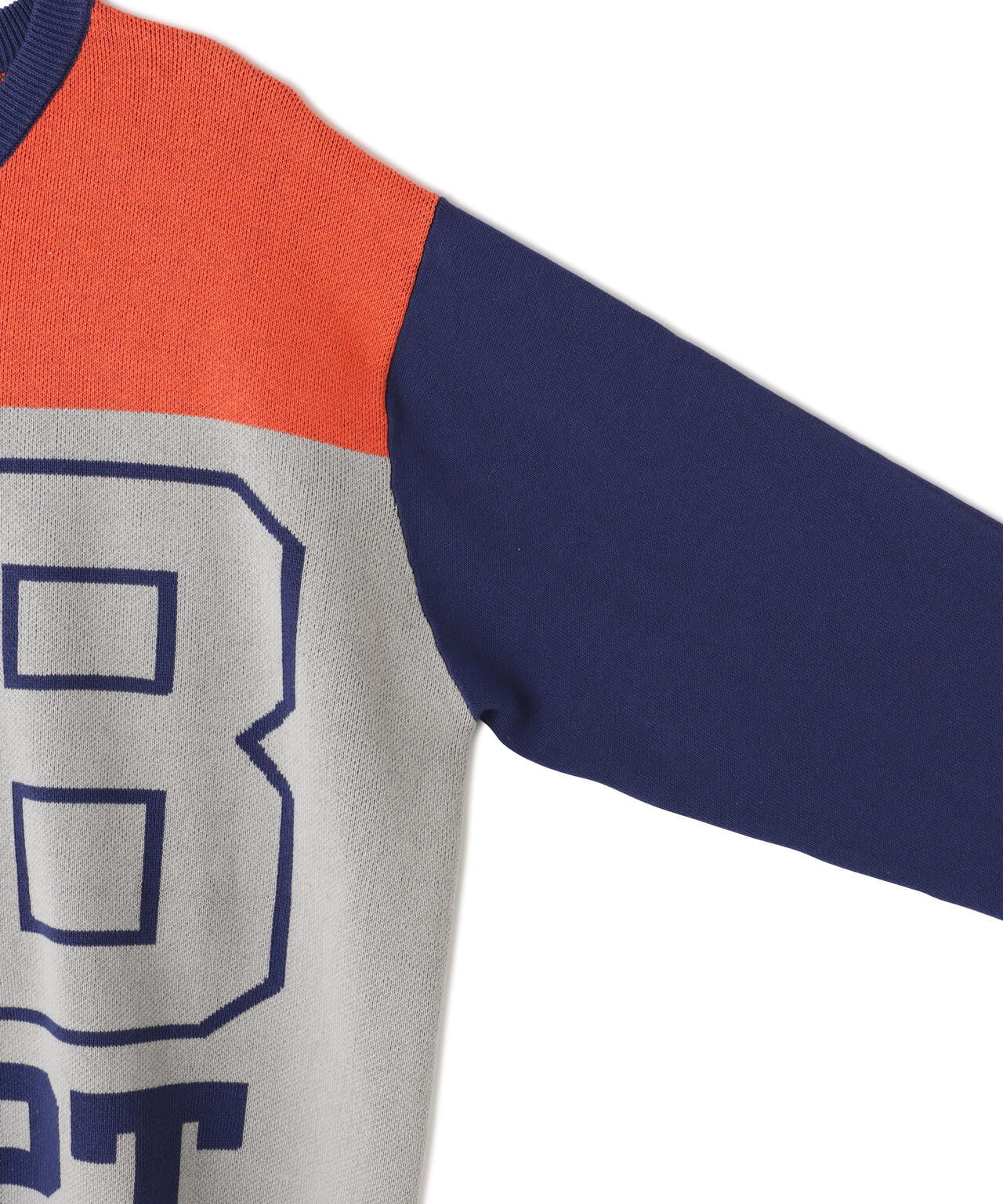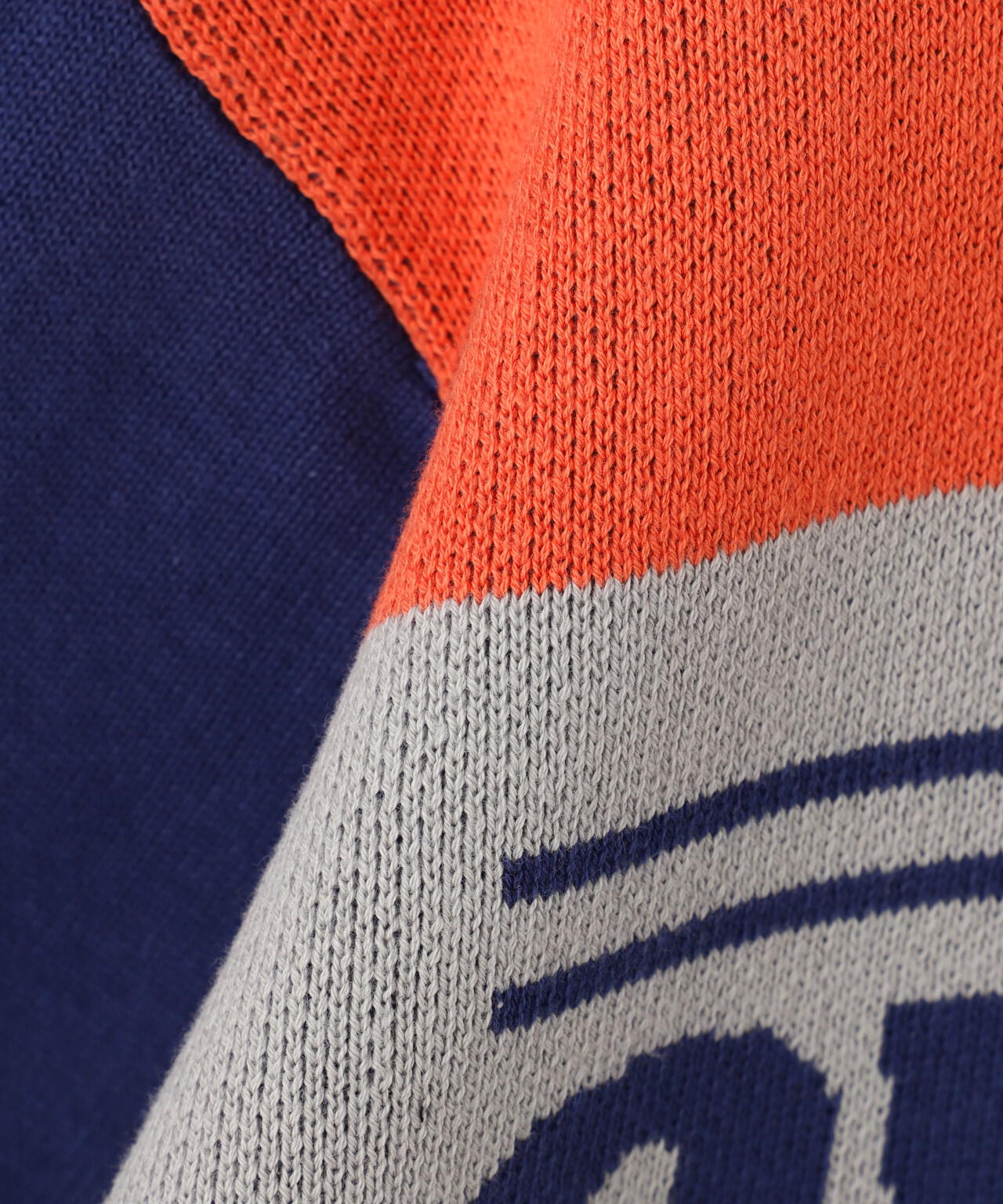 サッカーシャツからインスピレーションを得たデザインを毛玉の起きにくい綿100%ジャガードニットに落とし込んだ一着。