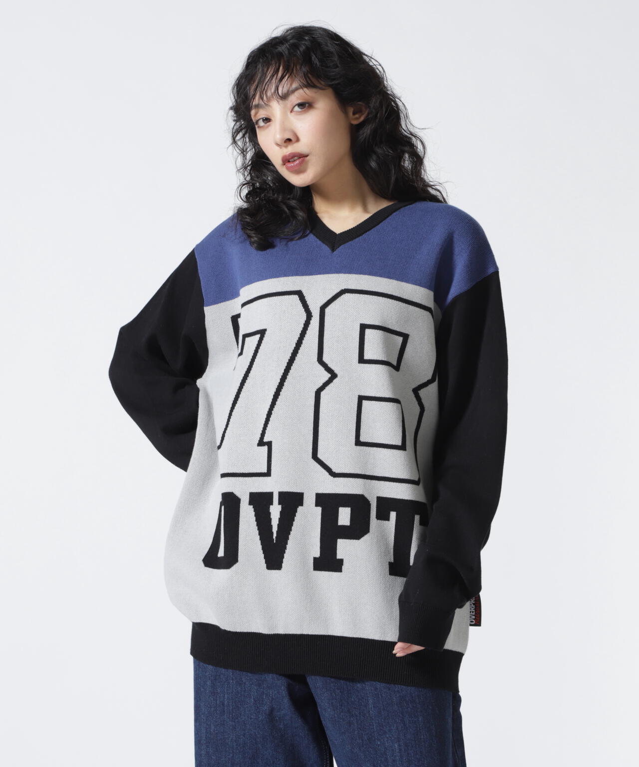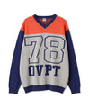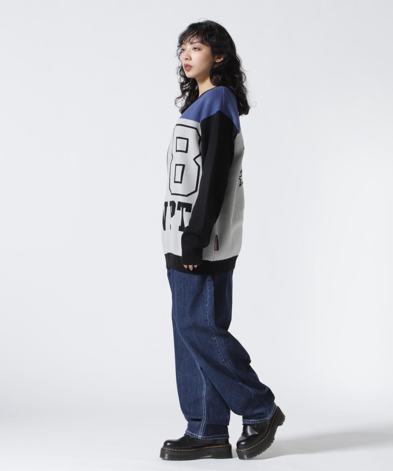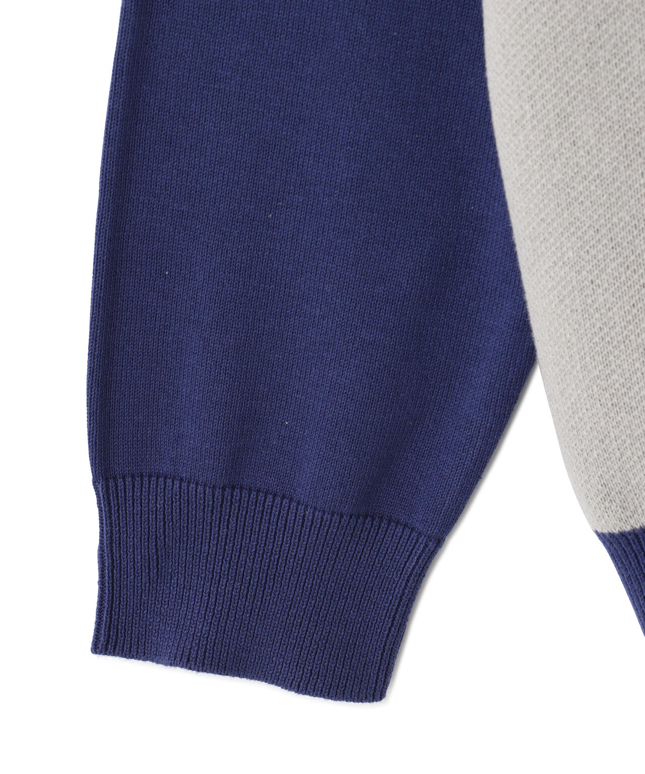 サッカーシャツからインスピレーションを得たデザインを毛玉の起きにくい綿100%ジャガードニットに落とし込んだ一着。