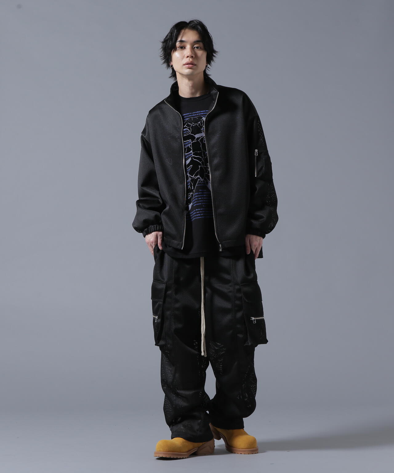 ファッションのテーマは「ニュースタンダード」。 時代に抗うのではなく、すり抜け受け流すことでブランドに見合う要素を抽出し、高品質な素材と、デジタライズなグラフィックを掛け合わせコレクションに落としていく。