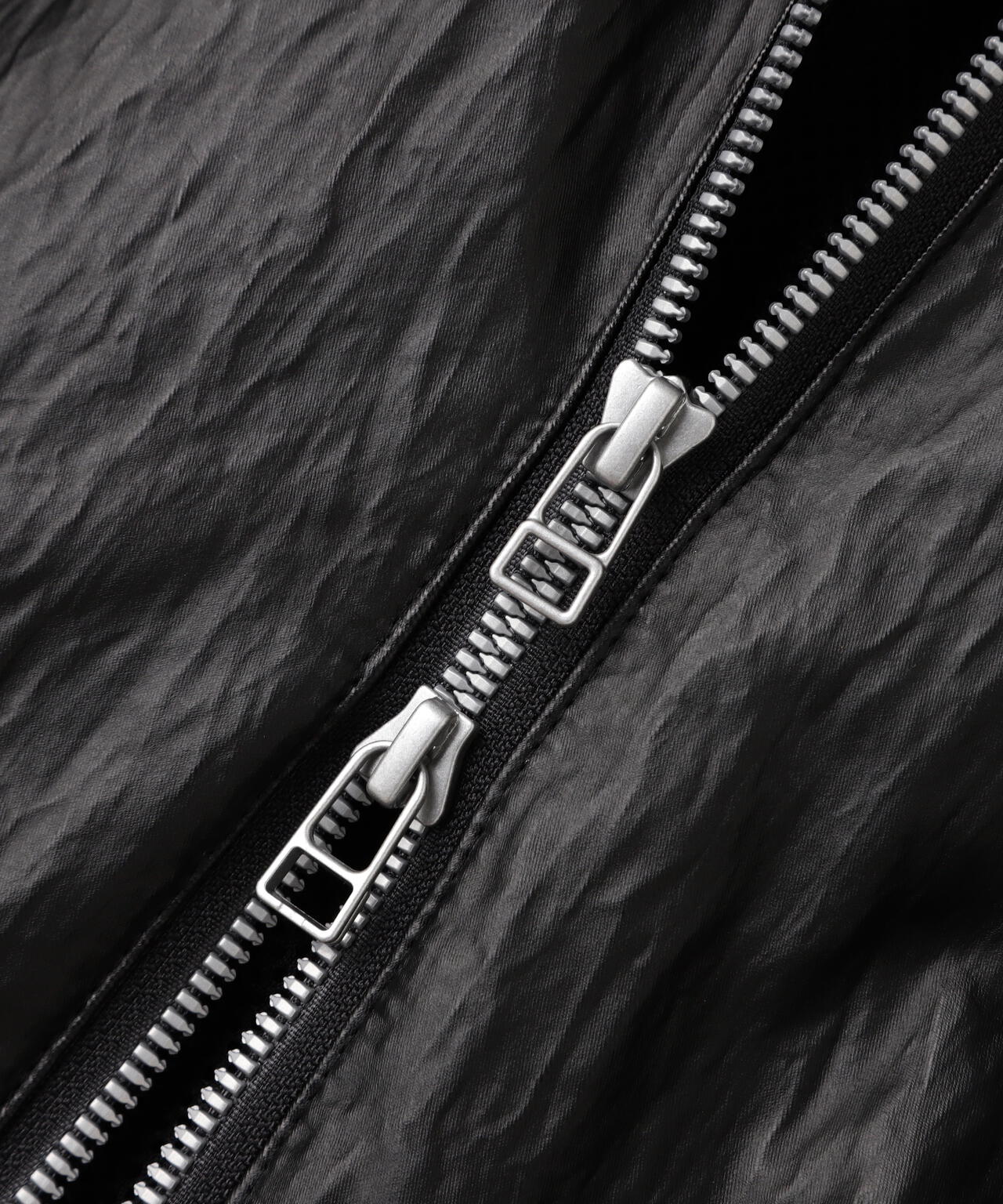 シルクのような滑らかな肌触りのテンセル素材を、ほどよい艶感を放つコーティングで仕上げたジップアップパーカー。