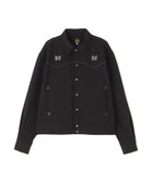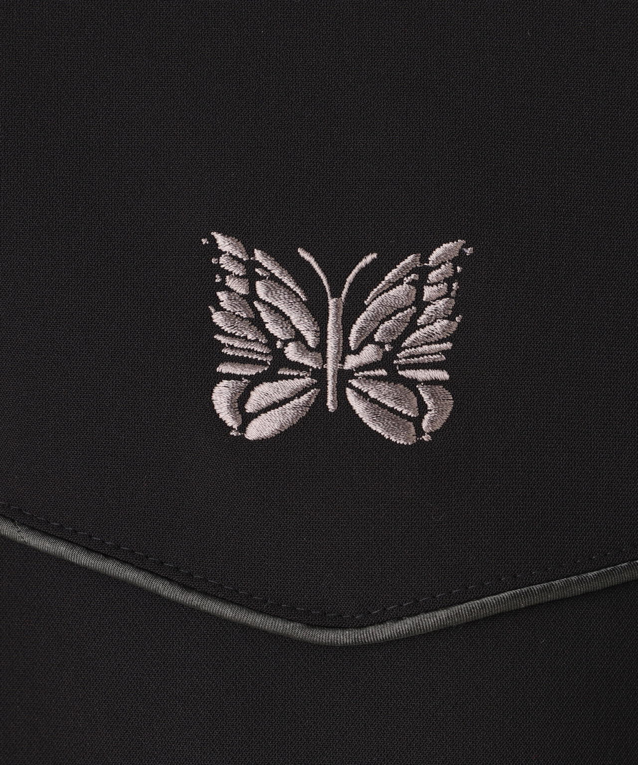 ショート丈とワイドな身幅のバランスでデザインされたカウボーイシャツジャケット。随所に施されたパイピングや蝶の刺繍、スナップボタンなどのウェスタンウェアの装飾的なディテールが〈NEEDLES〉らしい一着です。弾力のある厚手の素材感もジャケットのレトロなムードにマッチしています。同素材でパンツも展開されており、セットアップでもお楽しみ頂けるアイテムです。