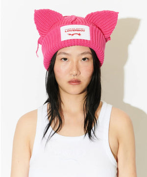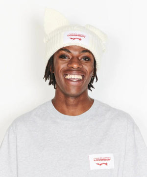 超柔らかいラムウールミックスで作られ、森の生き物の耳が特徴で、LOVERBOYの狐のパッチも付いています。
