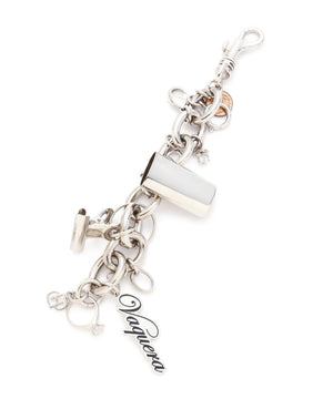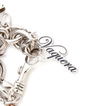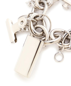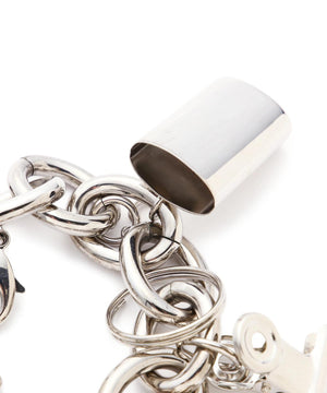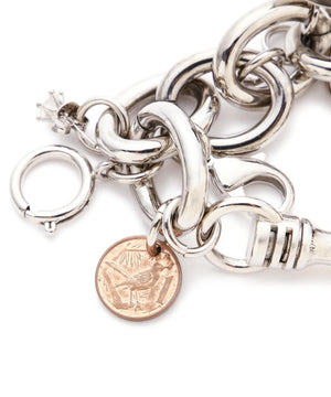 シルバートーンのケーブルチェーンに様々なモチーフがあしらわれた抜群の存在感を放つブレスレット。