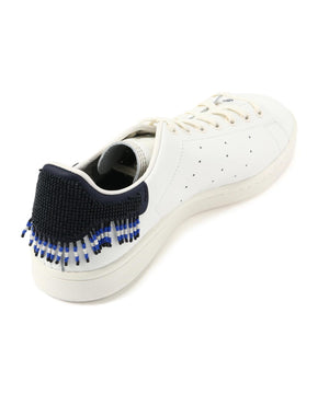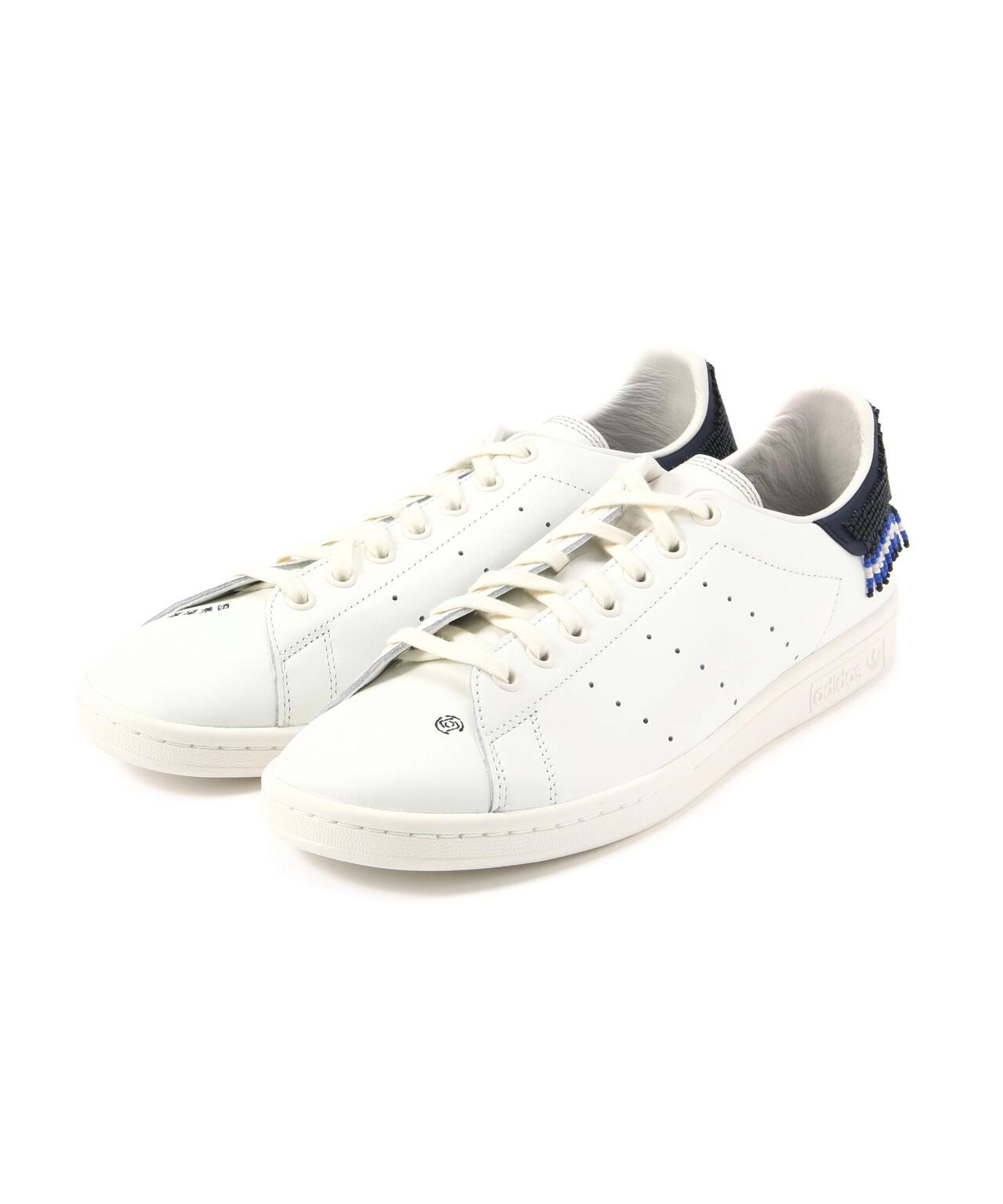 ホワイトのスタンスミスをベースに、かかとに部分に揺れるビーズの装飾、アッパーにはさりげないコラボレーションロゴを飾ったコラボレーションならではのデザインです。