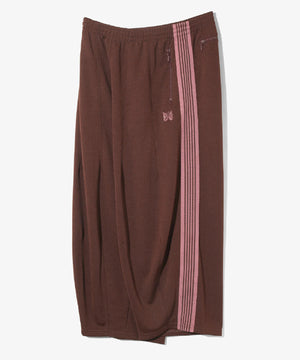 〈NEEDLES〉定番のトラックパンツが25年秋冬シーズンの新色で登場。今シーズンはブラウン、グリーン、レッドの全3色です。伸縮性や通気性に富んだポリエステルジャージー素材を使用した快適性に優れたアイテム。独特の配色や刺繍デザインなど、一般的なスポーツウェアとは一線を画した華やかなファッション性が魅力となっています。トラックパンツと並び人気の高い〈NEEDLES〉の定番ボトムス、H.D. PANTのシルエットを落とし込んだ個性的な一本です。