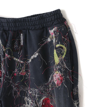 まるでチェーンアクセサリーを腰に巻き付けたようなスウェットパンツ。